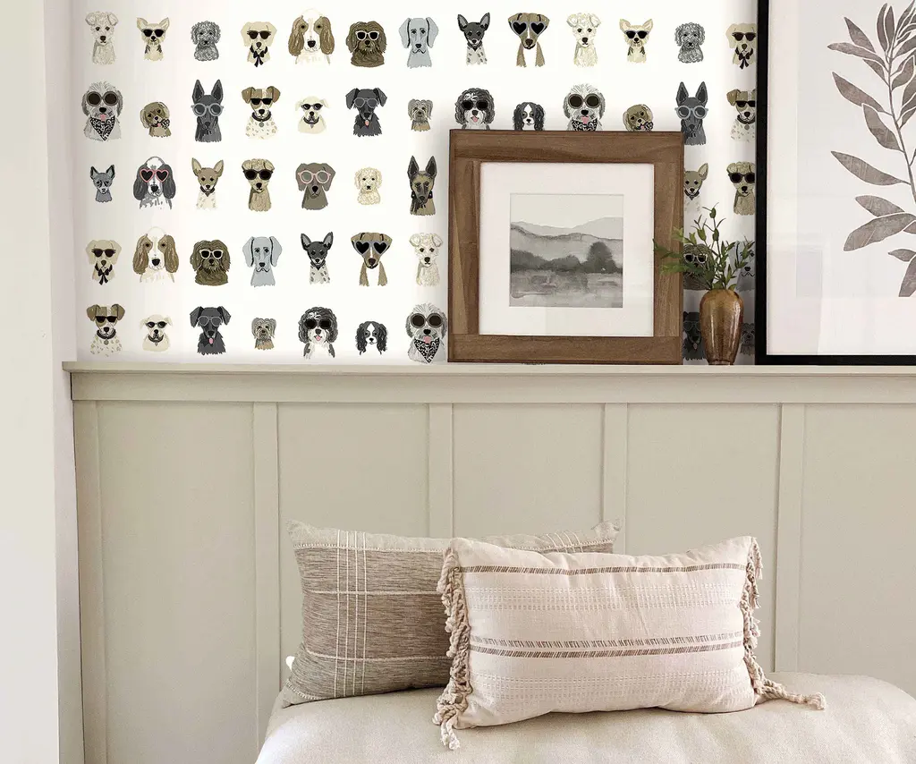 Loyal, loving, and looks good in sunglasses. Celebrate your favorite pup with our Dog Days wallpaper. This peel & stick wallpaper can easily be removed, making it perfect for rentals and accent walls. The paper is gravure printed with metallic accents and comes in 27 inch rolls with a 24 inch repeat. Due to the printing process, there may be color variations in different print runs. We suggest purchasing all wallpaper needed for a project at one time for the best color consistency. Unopened rolls can be returned.