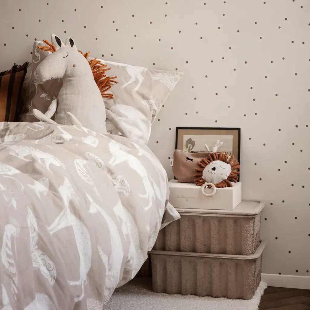 Handprinted polka dot forms reminiscent of potato stamps are printed in random patterns on our Dot wallpaper. Made using waterbased colors on non-woven paper, the subtle, yet statement making design works equally well in a child's bedroom as it does in a living room. Versioned in off white, dusty rose and pale grey, each is printed with dots in complementary colors.