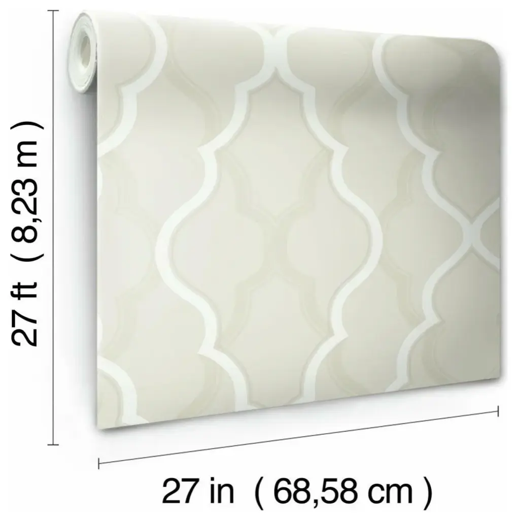 Large scale and bold with arabesque designs and metallic tracery in the foreground; soft shadows repeat the design in the background. This is Double Diamond, a strikingcontemporary wallpaper. This Double Damask Peel & Stick Wallpaper measures approximately 27 inches wide by 27 feet long, covering About 60.8 square feet per roll. Durable and easy to remove from primed walls, this friendly to hang unpasted nonwoven wallpaper is created with a special blend of synthetic fibers, making it both easy to hang and tear resistant. Unpasted non woven material; 25.25-in repeat, straight match; Washable and strippable; 27-in by 27-ft long roll; Covers about 60.8 square feet