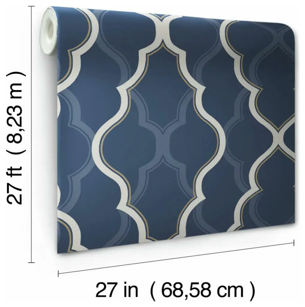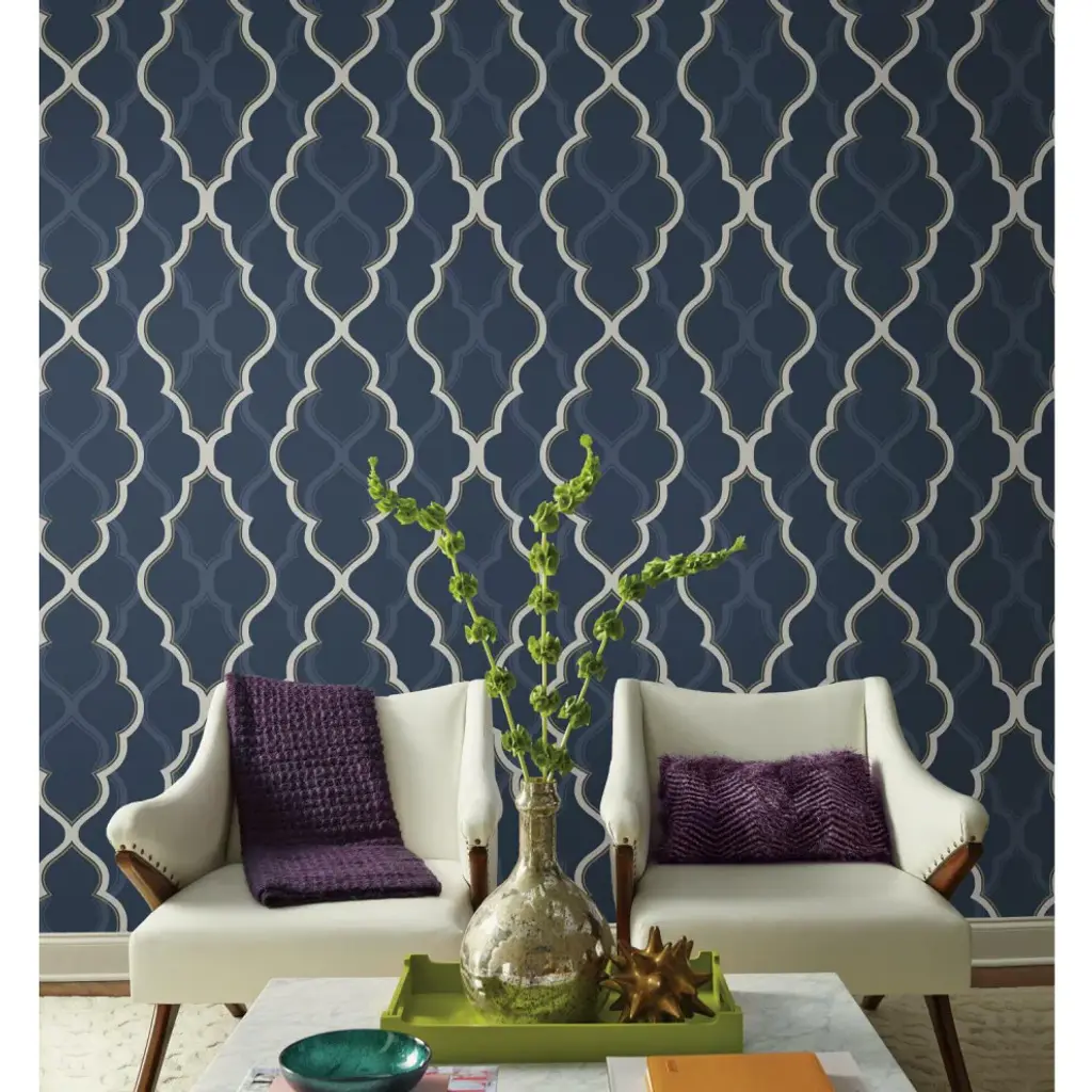 Large scale and bold with arabesque designs and metallic tracery in the foreground; soft shadows repeat the design in the background. This is Double Diamond, a strikingcontemporary wallpaper. This Double Damask Wallpaper measures approximately 27 inches wide by 27 feet long, covering About 60.8 square feet per roll. Durable and easy to remove from primed walls, this friendly to hang unpasted nonwoven wallpaper is created with a special blend of synthetic fibers, making it both easy to hang and tear resistant. Unpasted non woven material; 25.25-in repeat, straight match; Washable and strippable; 27-in by 27-ft long roll; Covers about 60.8 square feet