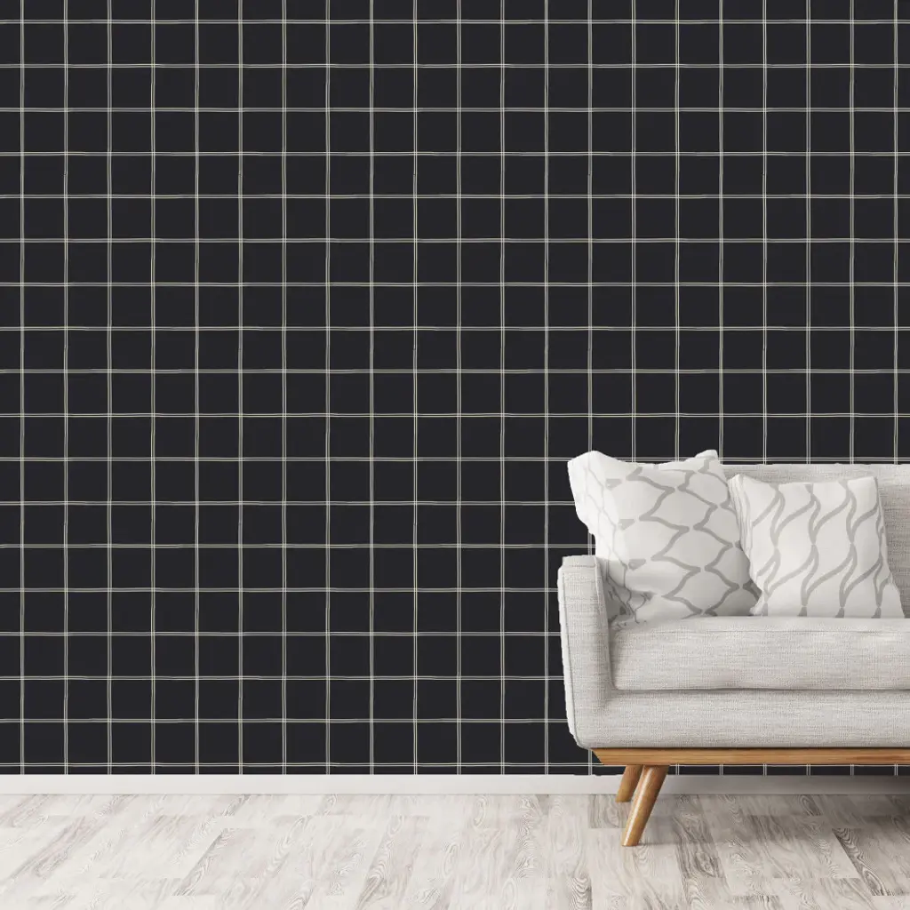 Double Grid Black Wallpaper By Erin Kendal, 24"x72"