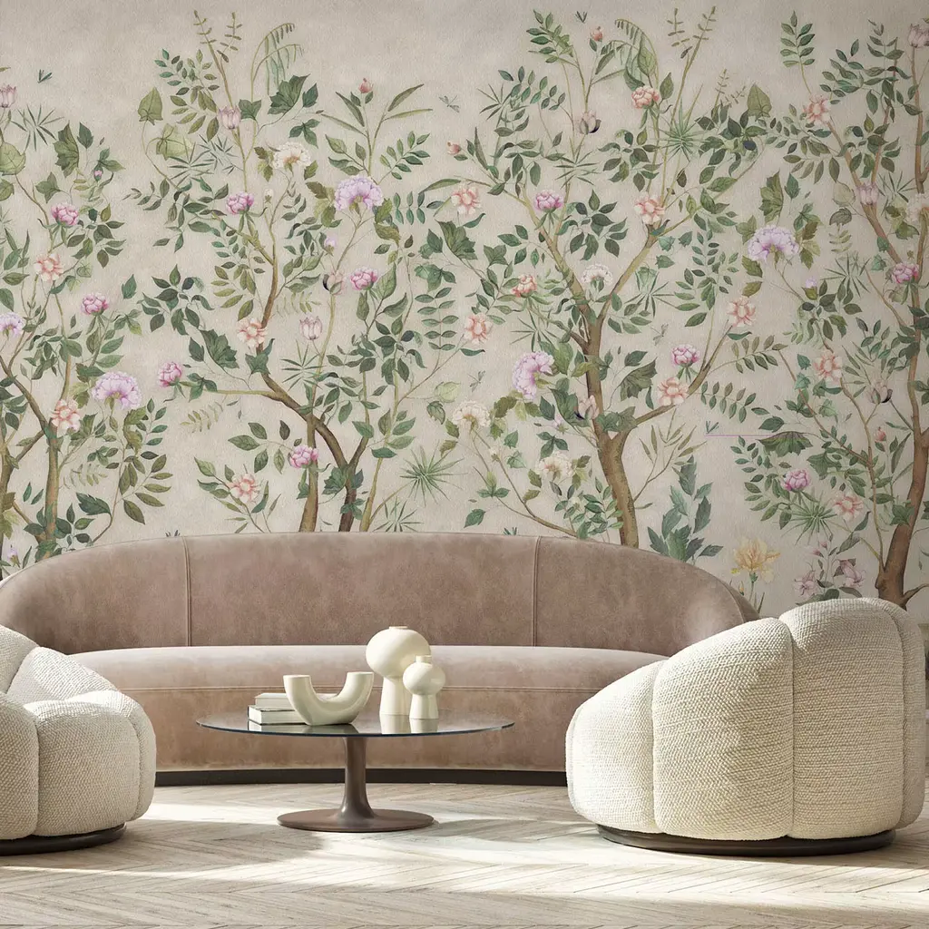 Affreschi & Affreschi's designs are crafted on fresh plaster sheets, creating a unique wallpaper. It features a plaster layer made from a blend of 27 precious raw materials, including Carrara marble and Roman travertine, used to evoke Italian art history’s masterpieces. The result is a natural, textured surface reminiscent of ancient frescoes. Designed by Marta Cortese, this piece is part of Eden Collection. The price is per square meter.