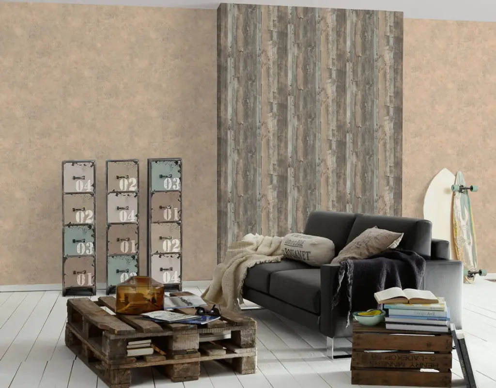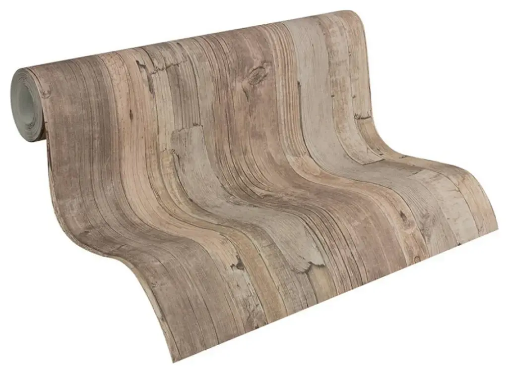 A.S. Création Wallpaper 954053, Roll 0,53x10,05 m, Offset match 64/32 cm, Non-woven / non-woven wallpaper. Color: Beige, Brown. Decor: Cottage, Wood. Room: corridor, living room, bedroom. Quality: good light fastness, Scrubbable, Strippable means.Made in Europe Roll covering 58 SQFT