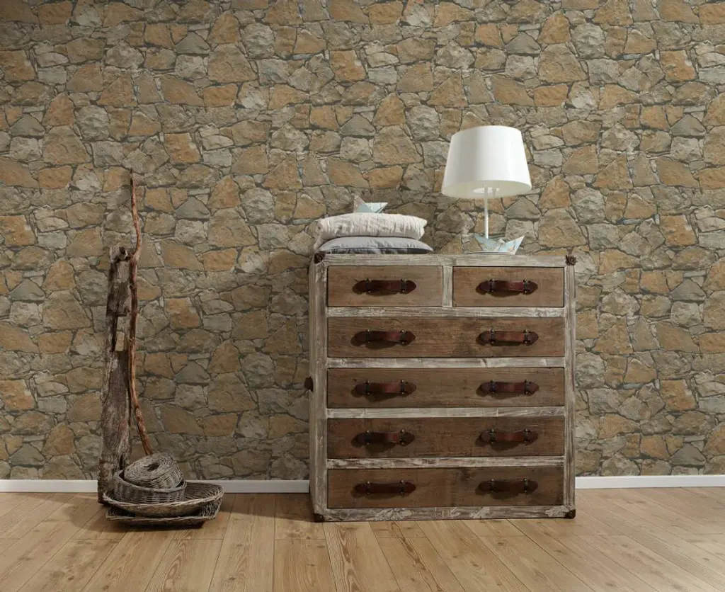 A.S. Création Wallpaper 958631, Roll 0,53x10,05 m, Offset match 53/26 cm, Non-woven / non-woven wallpaper. Color: Beige, Black, Brown. Decor: Cottage, Modern, Stone. Room: bathroom, kitchen, living room, office, bedroom. Quality: good light fastness, Scrubbable, Strippable means.Made in Europe Roll covering 58 SQFT