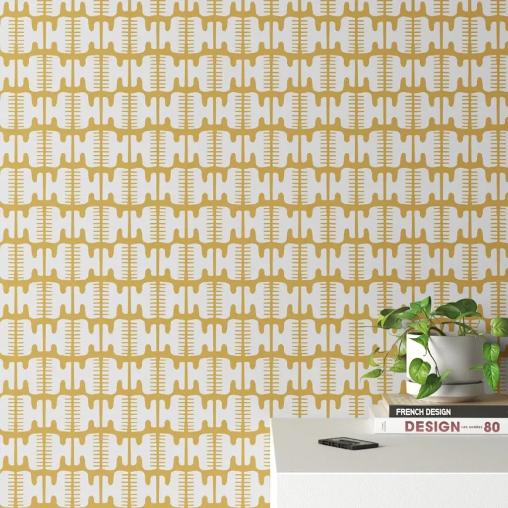 This wallpaper’s eclectic comb pattern was adapted from a three-dimensional ceramic piece by artist Hadiya Williams. It’s crafted from water-resistant vinyl in a smooth semi-gloss finish. A removable peel + stick application style lets you make a statement – without the commitment.