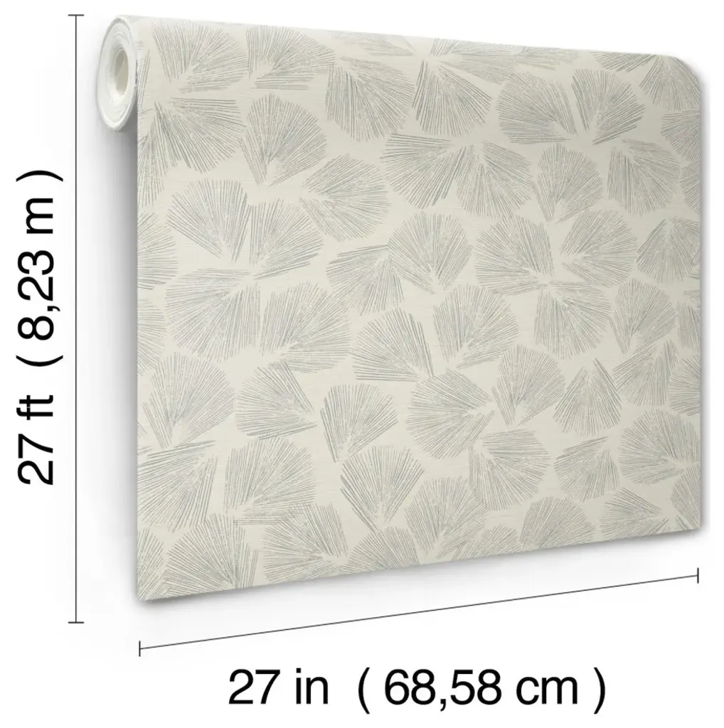This allover ground cover toss of garden leaves displays Elora Leaf''s fan shape and raised metallic veining against a backdrop of irregular horizontal lines, shown in graphite grey with metallic. This Elora Leaf Wallpaper measures approximately 27 inches wide by 27 feet long, measuring approximately 60.8 square feet per roll. A retrospective from the private collections of Christiane Lemieux featuring global, artistic, and handcrafted designs. Unpasted non woven material; 25.25-in repeat, straight match; Washable and strippable; 27-in by 27-ft long roll; Covers about 60.8 square feet