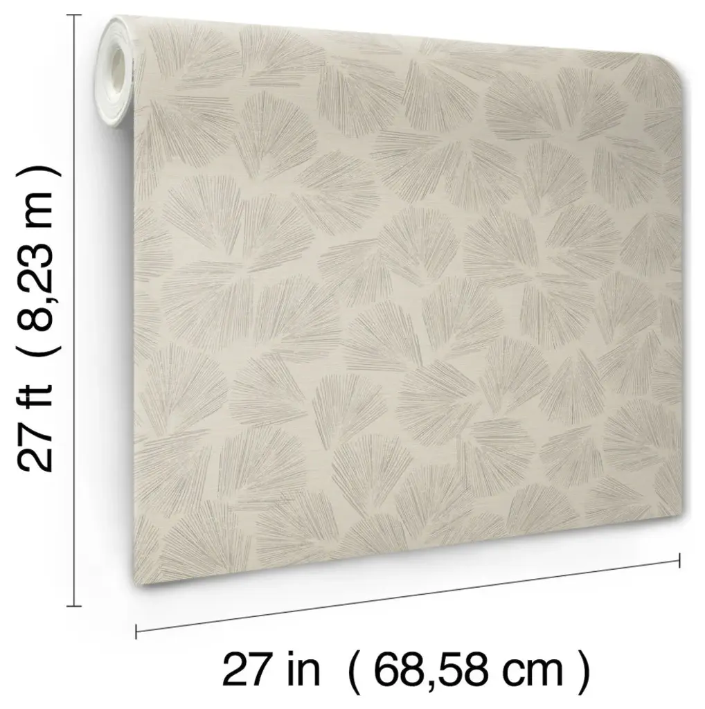 This allover ground cover toss of garden leaves displays Elora Leaf''s fan shape and raised metallic veining against a backdrop of irregular horizontal lines, shown in taupe brown with metallic. This Elora Leaf Wallpaper measures approximately 27 inches wide by 27 feet long, measuring approximately 60.8 square feet per roll. A retrospective from the private collections of Christiane Lemieux featuring global, artistic, and handcrafted designs. Unpasted non woven material; 25.25-in repeat, straight match; Washable and strippable; 27-in by 27-ft long roll; Covers about 60.8 square feet