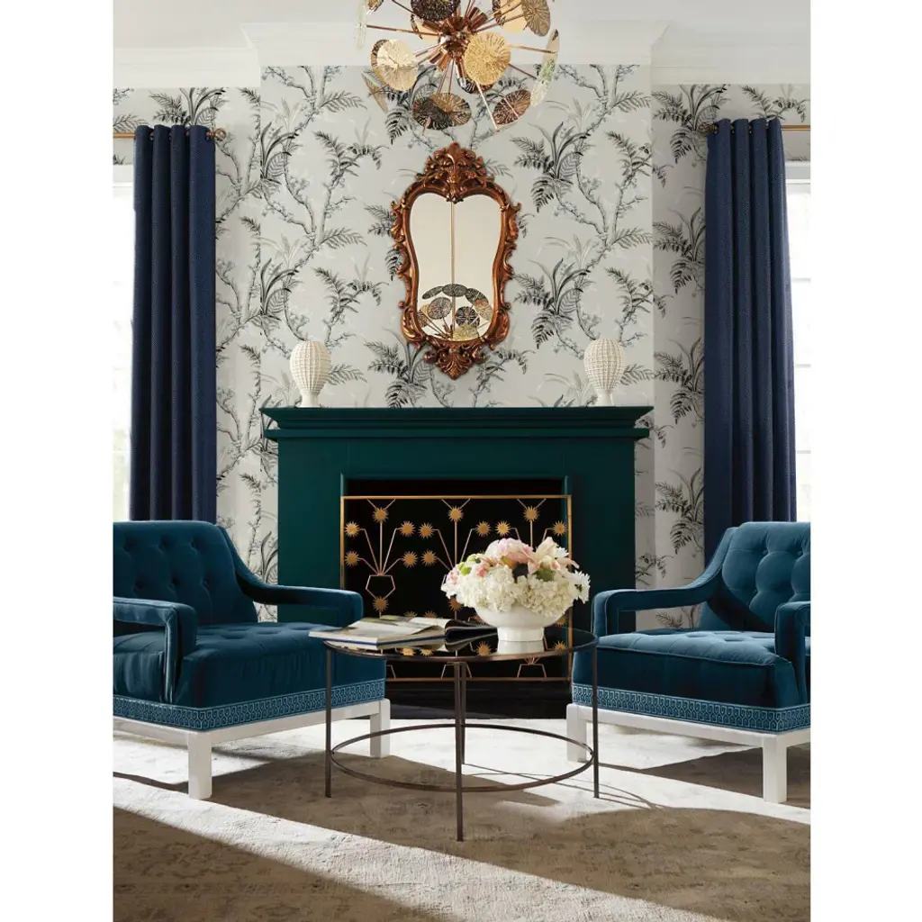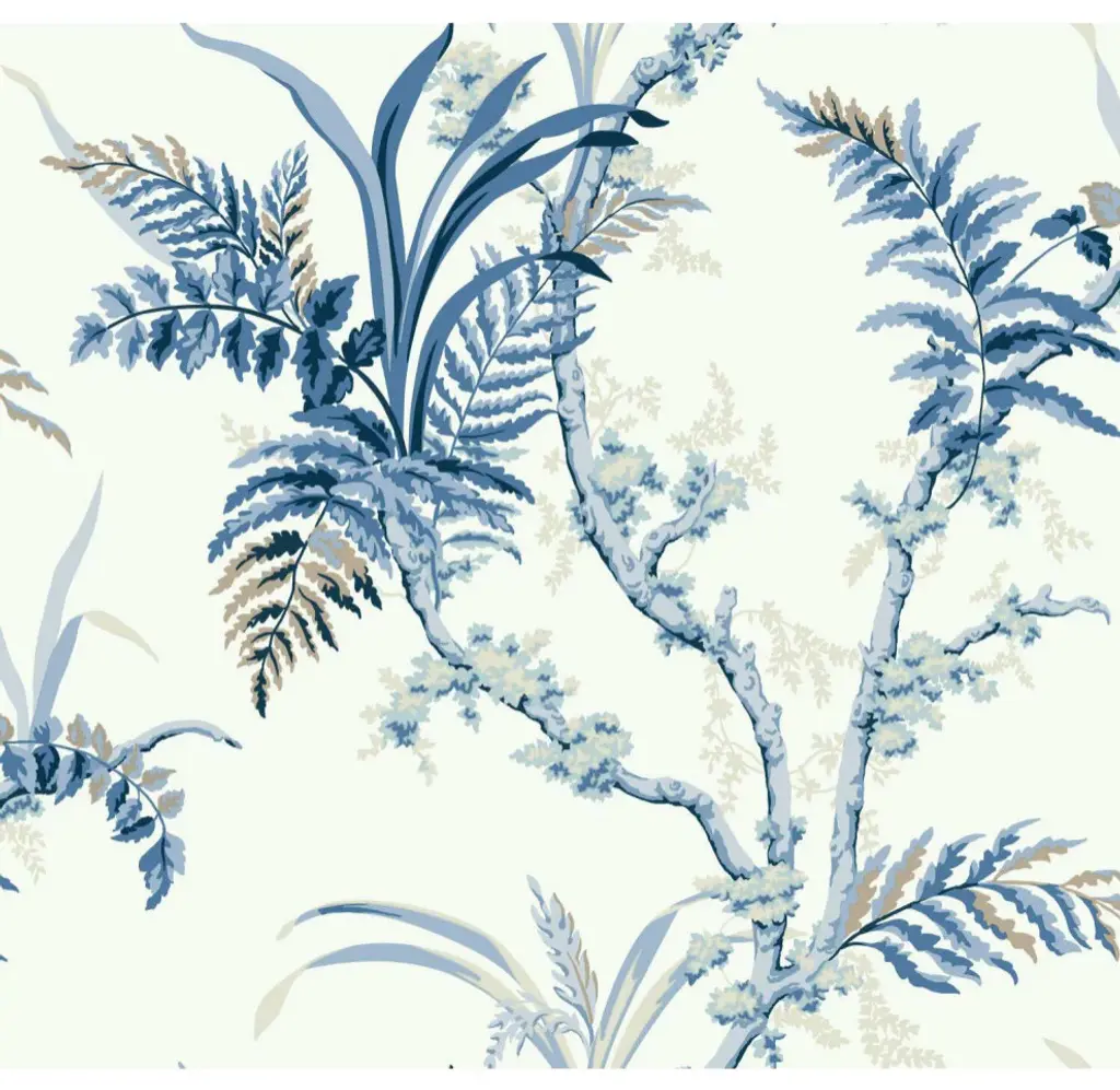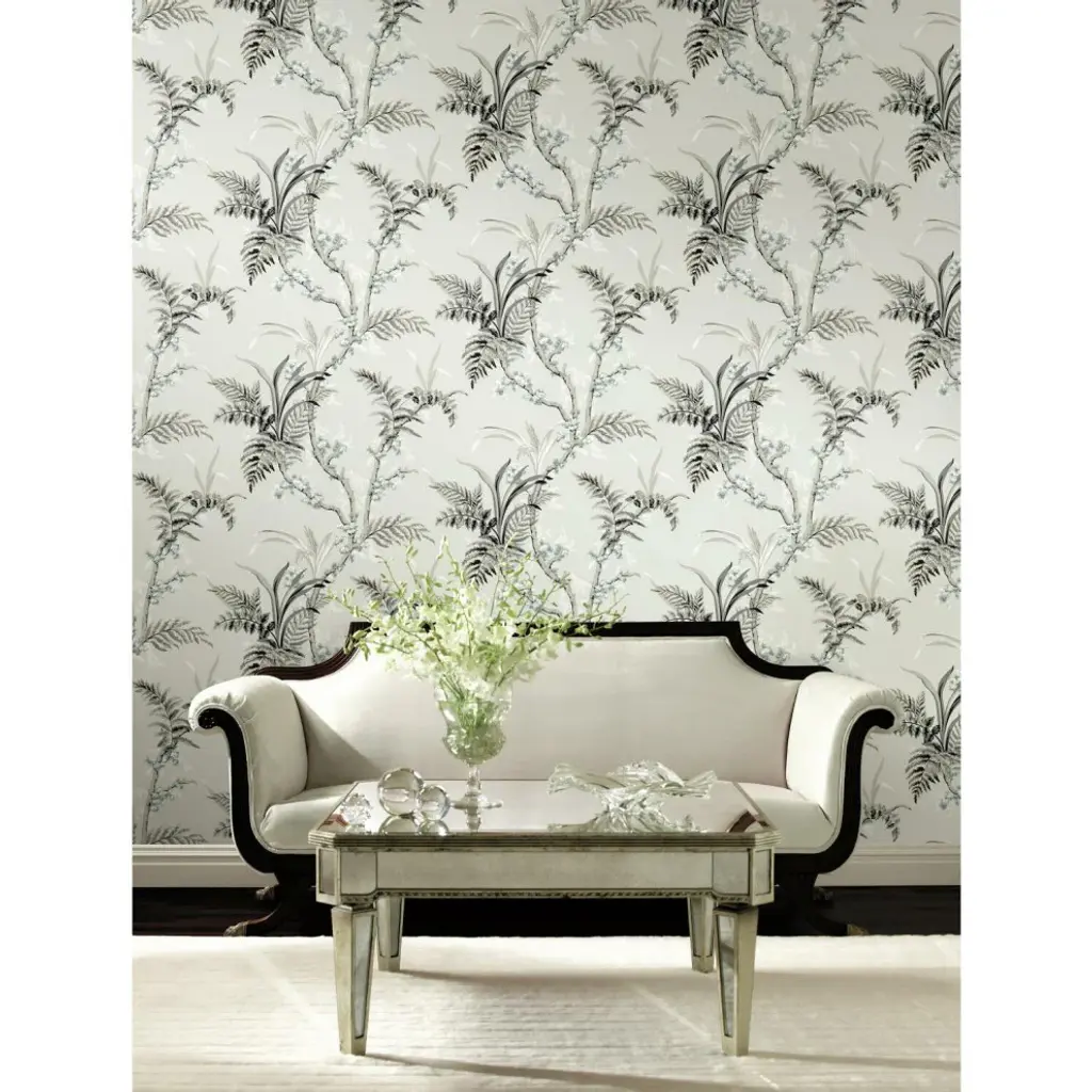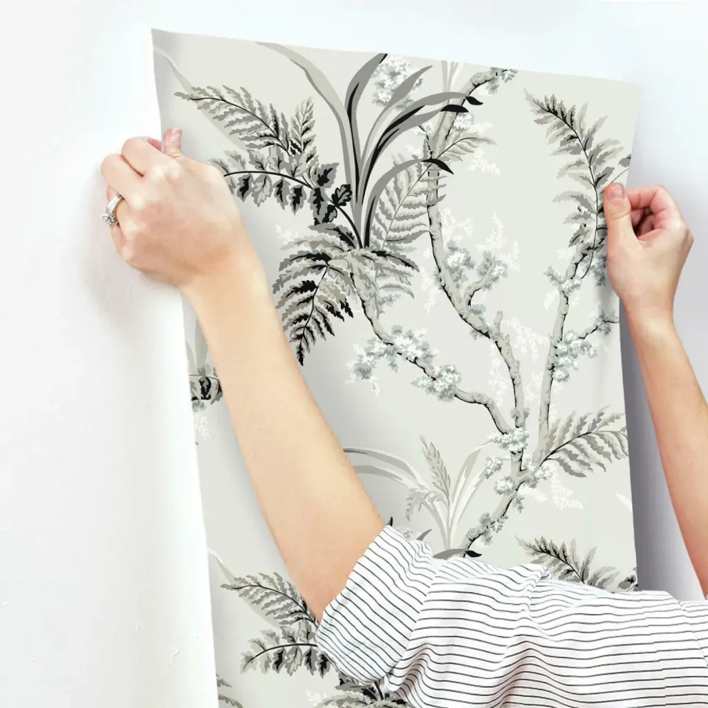 Timeless motifs combine with sophisticated color to create the playful, casual pattern mix of heritage and modern found in Grandmillennial. Manufactured on Sure Strip�, a unique high performance substrate, this ultra-easy removable wallpaper is guaranteed easy to install and easy to remove; simply use water to activate. Lush fronds and greenery set a charming tropical stage with pattern Enchanted Fern. Includes 1 roll - 27 in x 27 ft = 60.75 sq ft with a drop match and 25.25 in repeat.