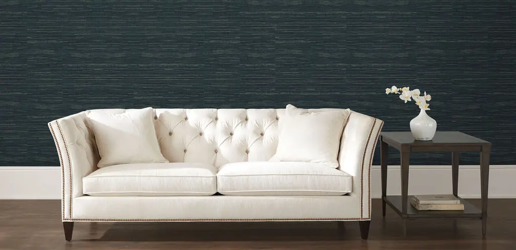 Shades of deep teal woven with lighter cool tones make for a moody grasscloth wallpaper. Whether on an accent wall or covering an entire room, Erica serves as a stunning backdrop for glamorous décor.