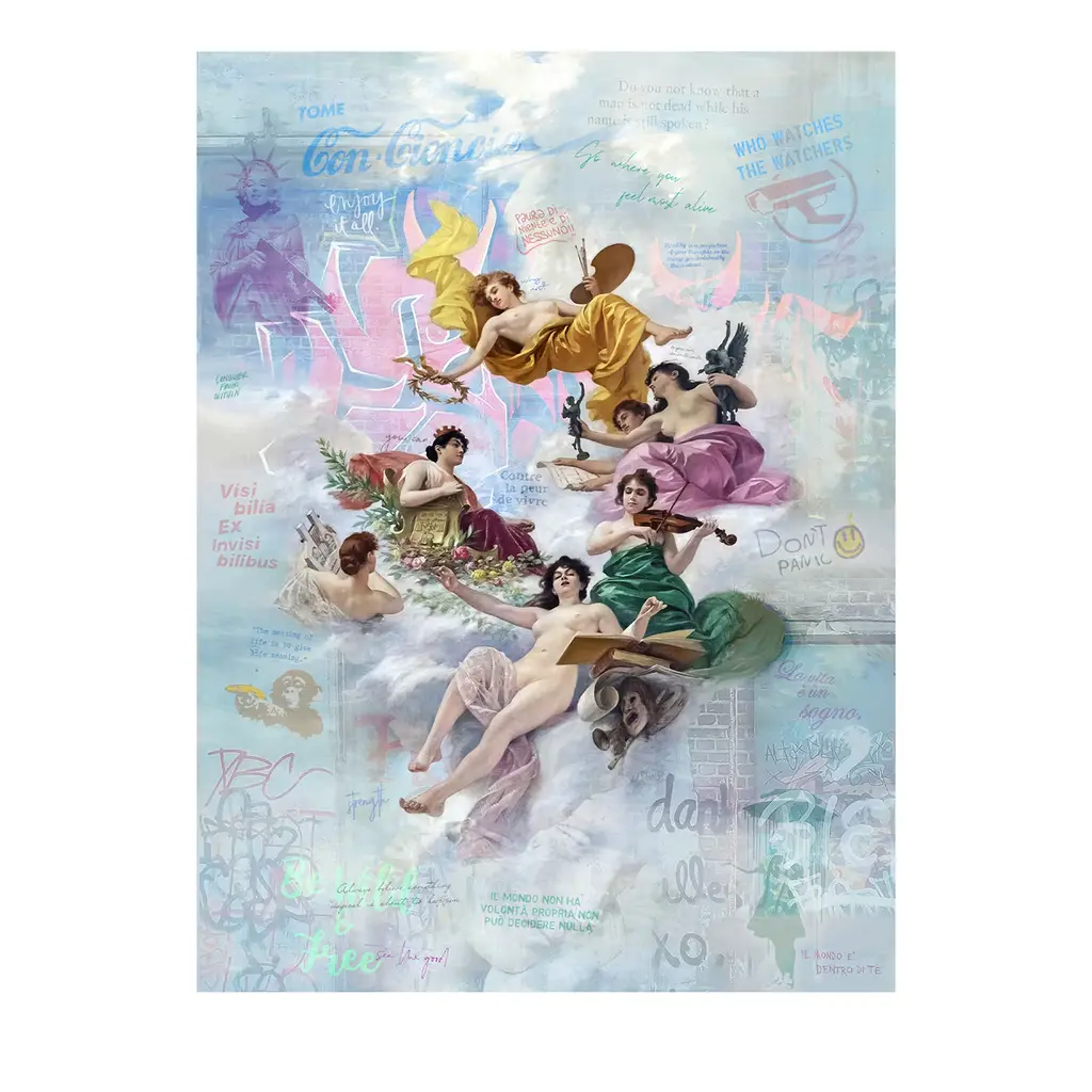 Marco Battaglini is an Italian artist, based in Costa Rica, who blends classic and contemporary Art through his original ARTPOPCLASSIC® Style. The uniqueness of the artist is to conceptualize the possible coexistence of the ideals of classical beauty with contemporary urban anti-aesthetics. Battaglini modernizes the history of his Italian roots, by combining works of Art with profane backgrounds with an urban style. Please ask the Concierge for further information. Price per squared meter.