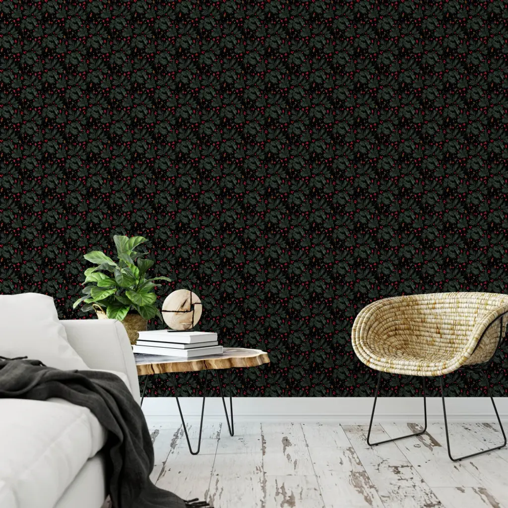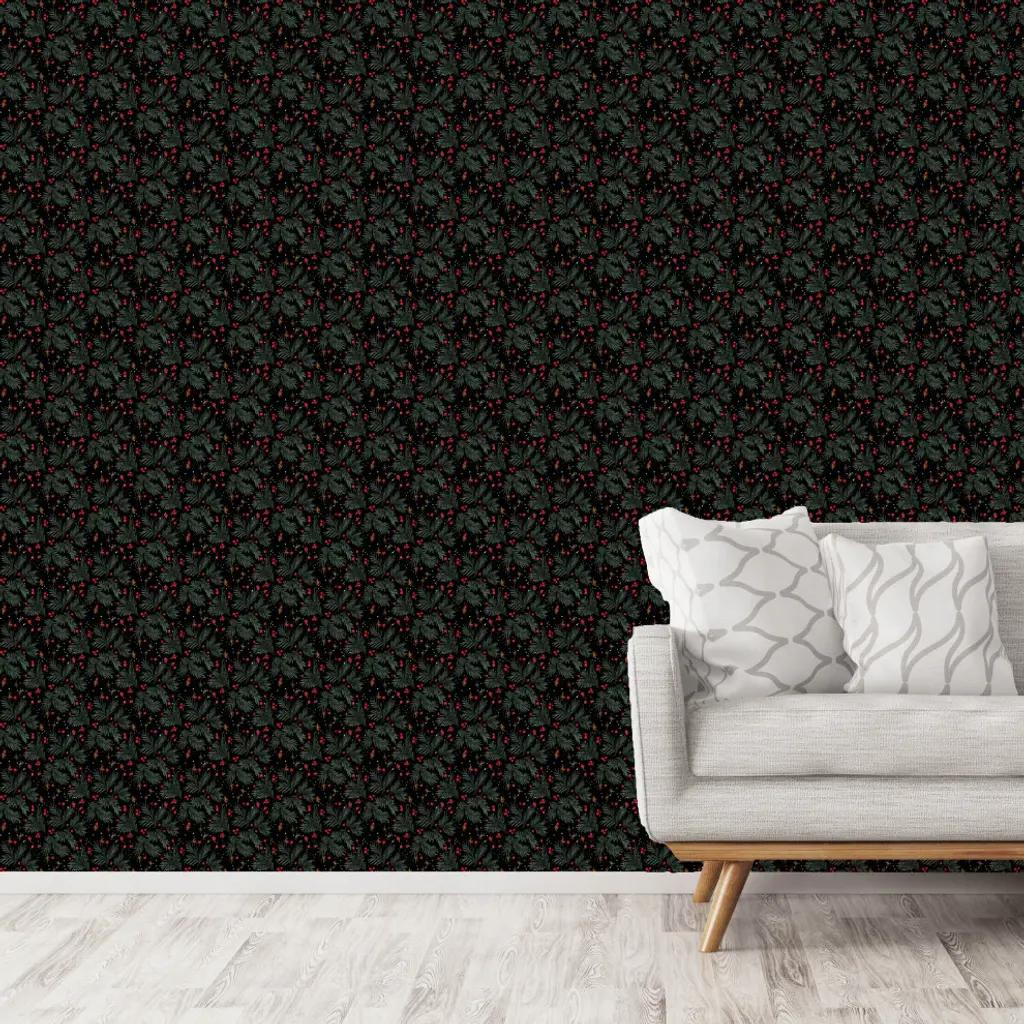 Evergreen Red Berry Springs And Stars Wallpaper, 24"x72"