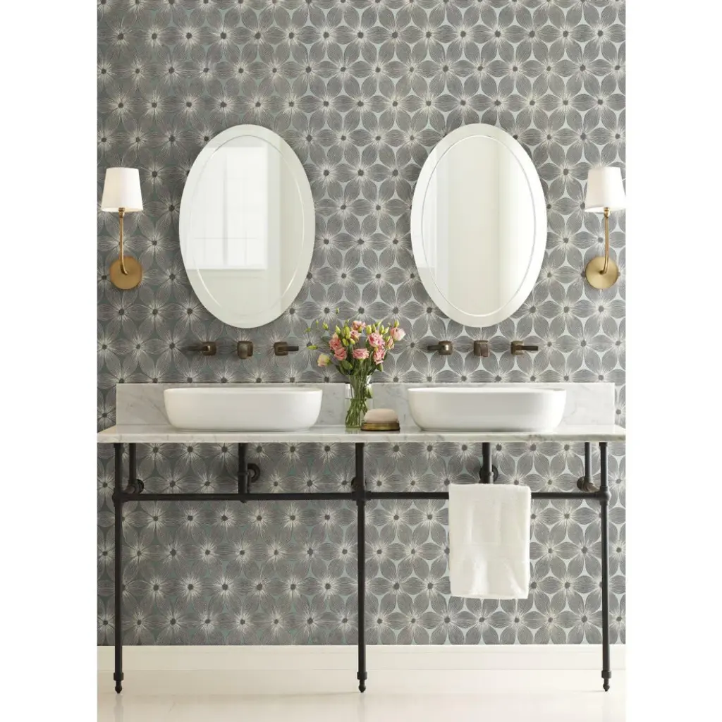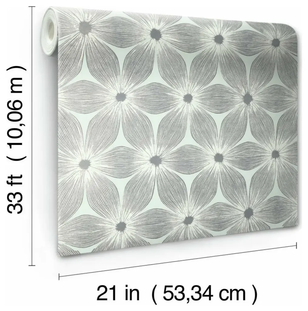 Oversized blossoms, like wildflowers, form an interlocking design against a solid background. The daisy-like blooms have a glistening finish thanks to the metallic inks on Everlasting Wallpaper. This Everlasting Wallpaper measures approximately 21 inches wide by 33 feet long, covering About 57.8 square feet per roll. Durable and easy to remove from primed walls, this friendly to hang unpasted nonwoven wallpaper is created with a special blend of synthetic fibers, making it both easy to hang and tear resistant. Unpasted non woven material; 21-in repeat, straight match; Washable and strippable; 21-in by 33-ft long roll; Covers about 57.8 square feet