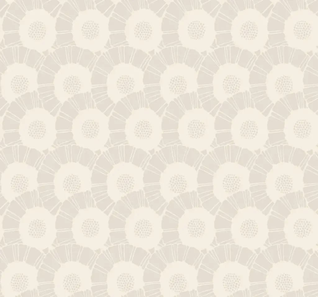 Oversized blossoms, like wildflowers, form an interlocking design against a solid background. The daisy-like blooms have a glistening finish thanks to the metallic inks on Everlasting Wallpaper. This Everlasting Wallpaper measures approximately 21 inches wide by 33 feet long, covering About 57.8 square feet per roll. Durable and easy to remove from primed walls, this friendly to hang unpasted nonwoven wallpaper is created with a special blend of synthetic fibers, making it both easy to hang and tear resistant. Unpasted non woven material; 21-in repeat, straight match; Washable and strippable; 21-in by 33-ft long roll; Covers about 57.8 square feet