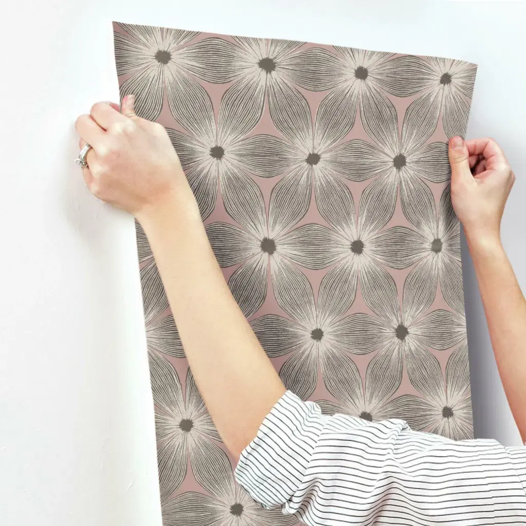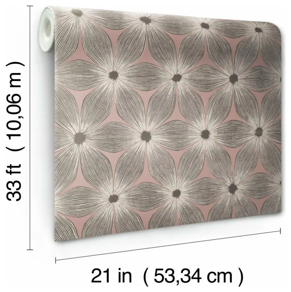 Oversized blossoms, like wildflowers, form an interlocking design against a solid background. The daisy-like blooms have a glistening finish thanks to the metallic inks on Everlasting Wallpaper. This Everlasting Wallpaper measures approximately 21 inches wide by 33 feet long, covering About 57.8 square feet per roll. Durable and easy to remove from primed walls, this friendly to hang unpasted nonwoven wallpaper is created with a special blend of synthetic fibers, making it both easy to hang and tear resistant. Unpasted non woven material; 21-in repeat, straight match; Washable and strippable; 21-in by 33-ft long roll; Covers about 57.8 square feet
