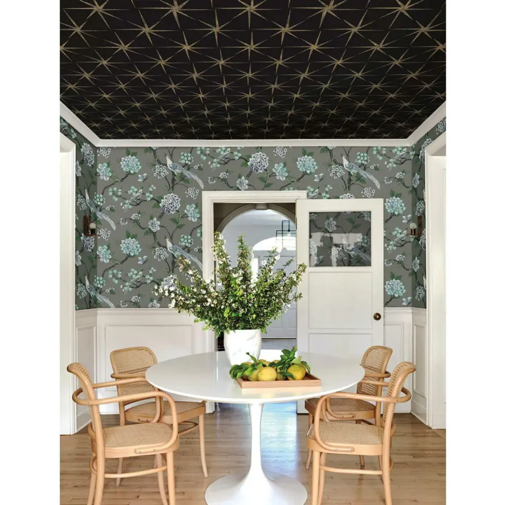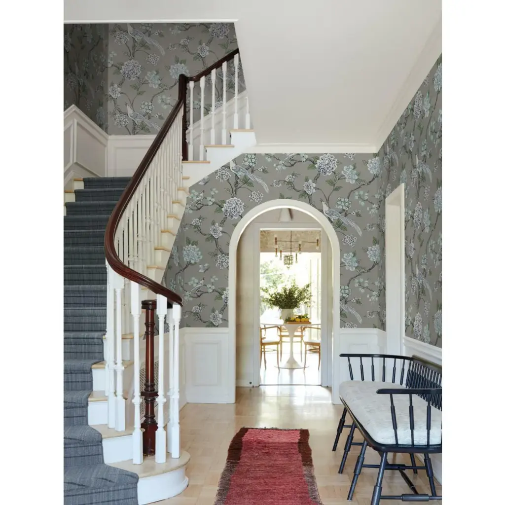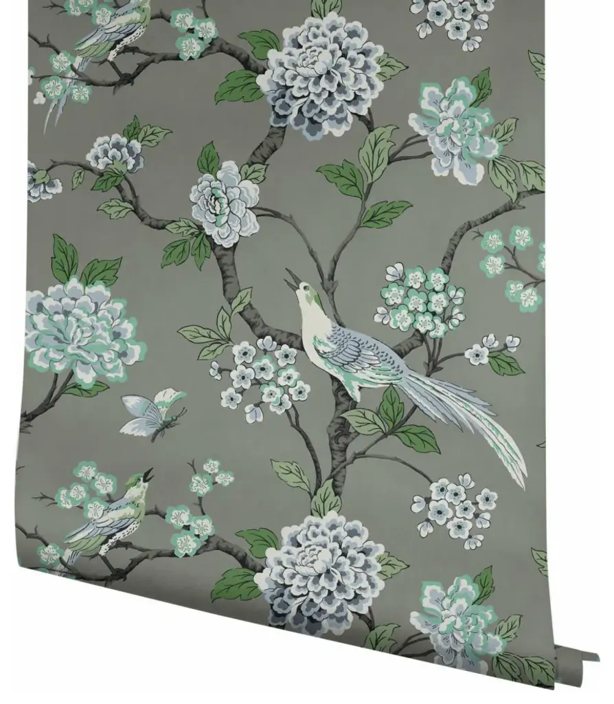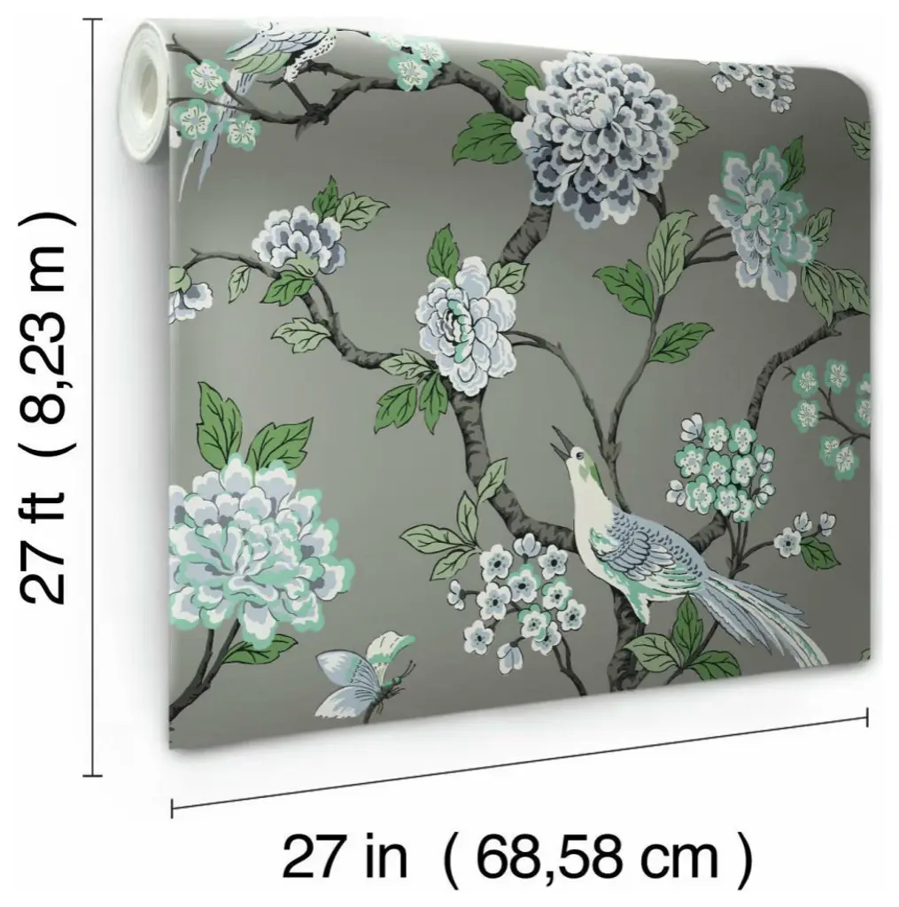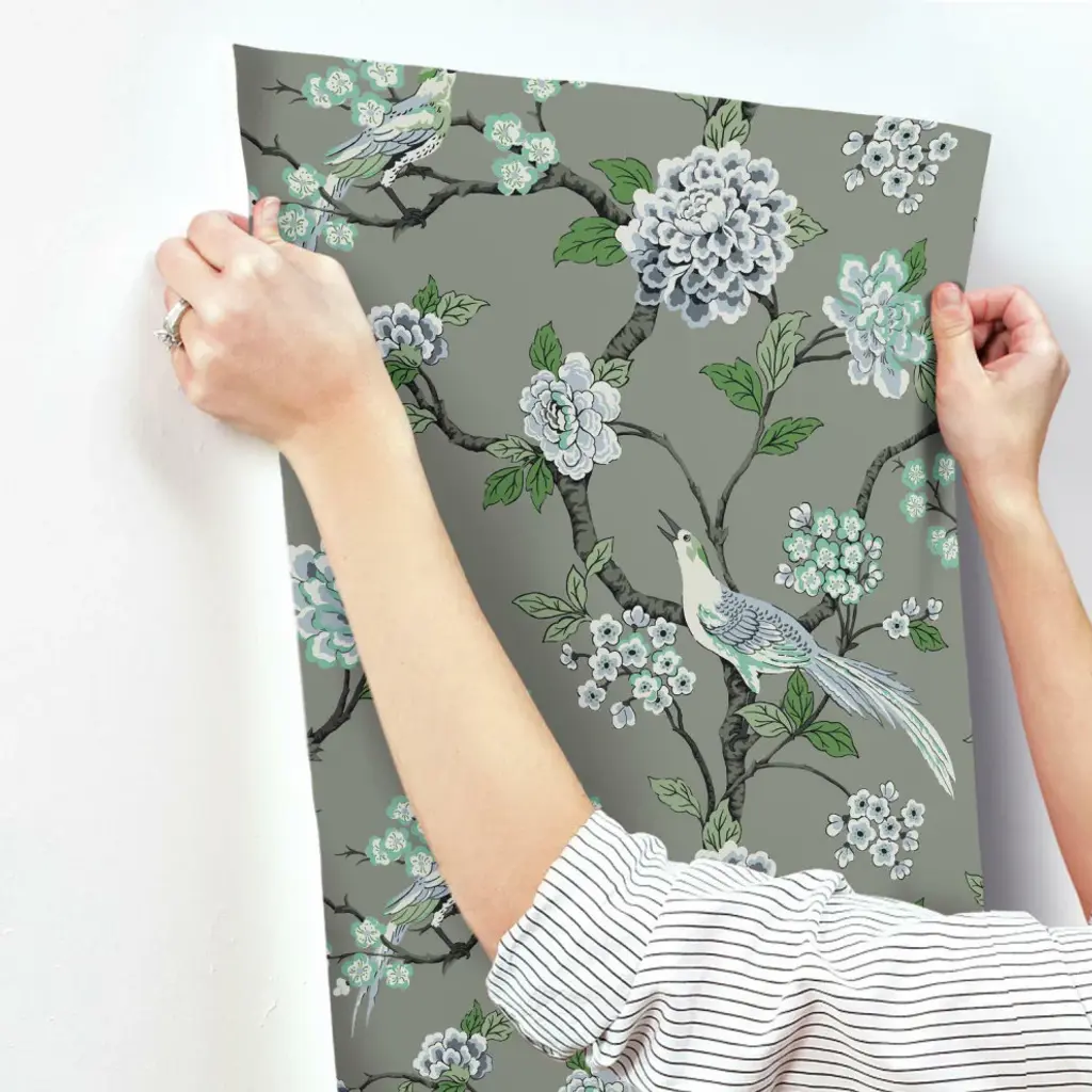 Timeless motifs combine with sophisticated color to create the playful, casual pattern mix of heritage and modern found in Grandmillennial. Manufactured on Sure Strip�, a unique high performance substrate, this ultra-easy removable wallpaper is guaranteed easy to install and easy to remove; simply use water to activate. Pattern Fanciful�s bird and blossom trail pattern, touched by metallic, is a modern update to classic style. Includes 1 roll - 27 in x 27 ft = 60.75 sq ft with a drop match and 25.25 in repeat.