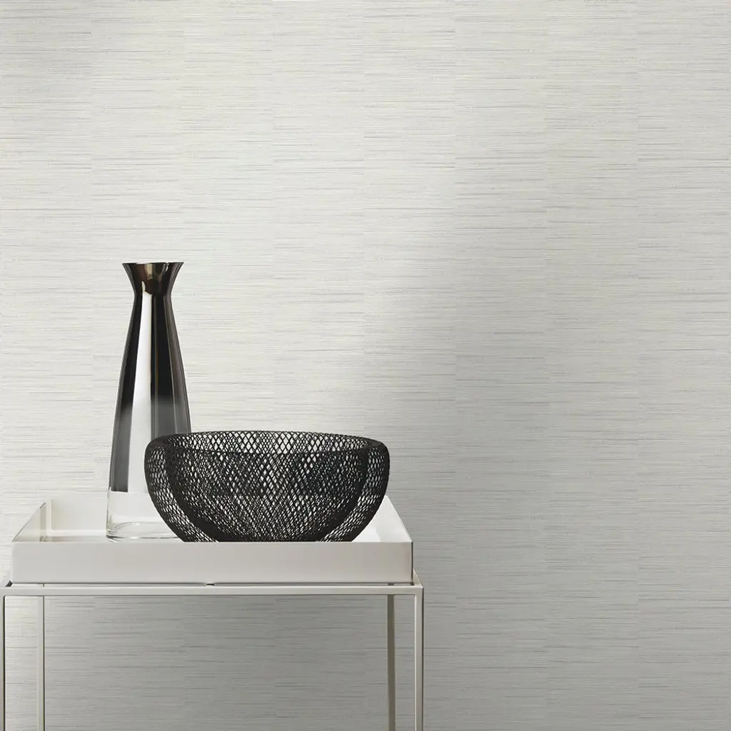 Faux Metallic Grasscloth Wallpaper In Light Grey