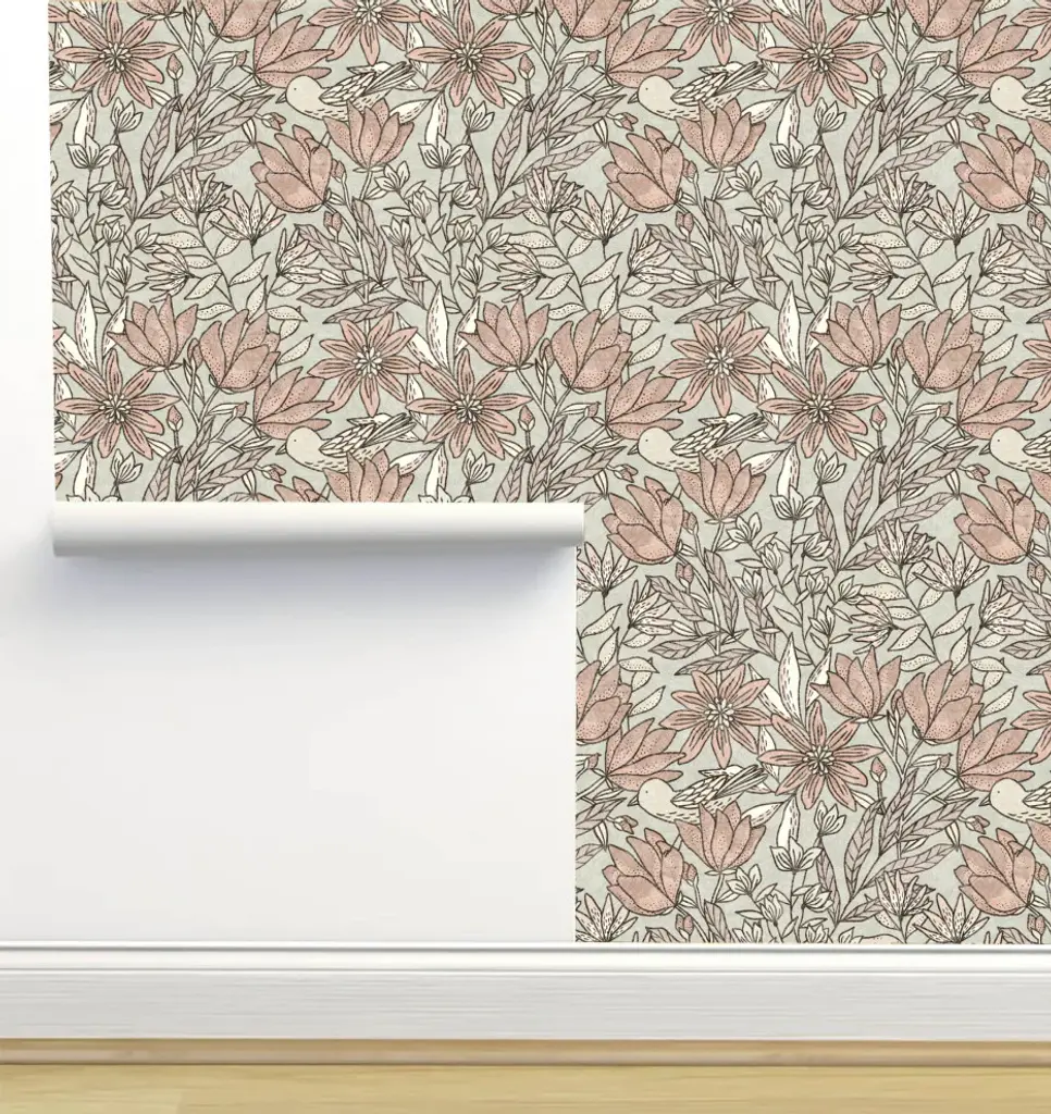 Each roll of wallpaper is custom printed to order and has a fixed width that covers 24 inches of wall space. Peel & Stick Fabric Wallpaper - Removable and Repositionable! Limitless Walls Fabric Peel and Stick wallpaper is a woven polyester fabric with an adhesive backing. Limitless Walls fabric is not like everyone else"™s, ours is the thickest most durable and easiest to install. You won"™t be able to find this anywhere else since we make it ourselves!• 100% opaque white polyester woven with adhesive backing• Eco-friendly and formaldehyde-, phthalate-, and PVC-free• To install, simply peel and stick• Easily removable and repositionable IMPORTANT NOTE Our wallpapers are not recommended for application over paints advertised as being stain-resistant or washable. These paints are crafted to prevent things from sticking -- including wallpaper. If in doubt, you can use Zinsser Gardz which is a clear primer that you can apply right over your current paint. If your wall has been recently painted, allow at least 2+ weeks for the paint to cure before applying wallpaper. Applying wallpaper over uncured paint can lead to bubbling. Our wallpaper will not stick to cement or textured walls.We highly recommend ordering a test swatch before committing to full rolls. While we have done our best to accurately represent the color and scale of this design, computer monitors aren''t the best way to determine how a printed color will look in person. It''s possible that the finished product may be slightly different than it appears in the preview. It is also important to test the adhesive on your unique surface.CARE INSTRUCTIONS:Gently wipe down with a damp cloth, soft cleaners such as dish soap can be used. The use of heavy cleaners or heavy rubbing can cause color to lift.Original Design by Amy MacCready.