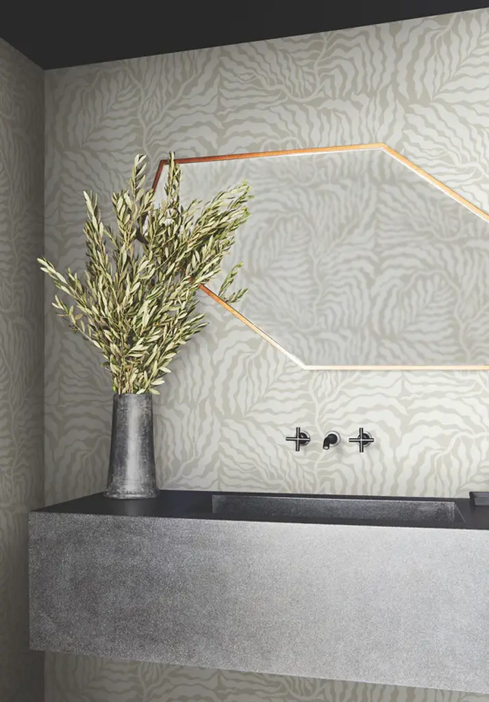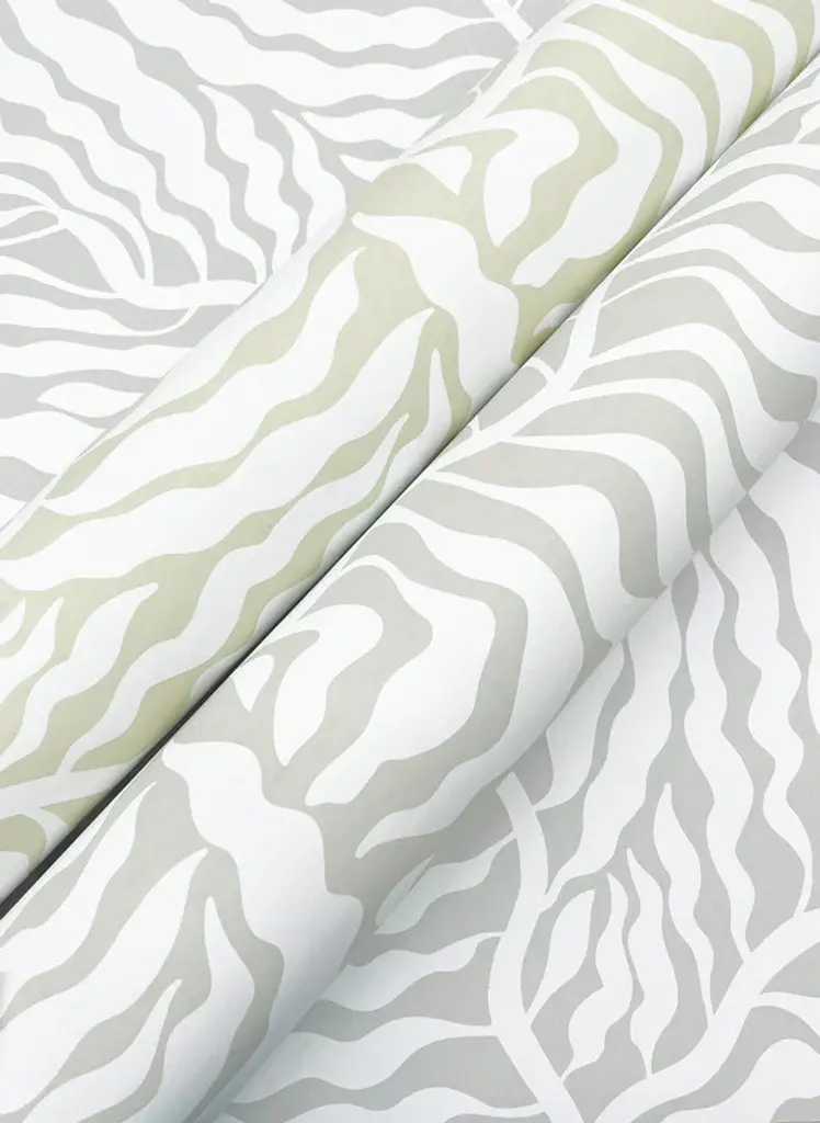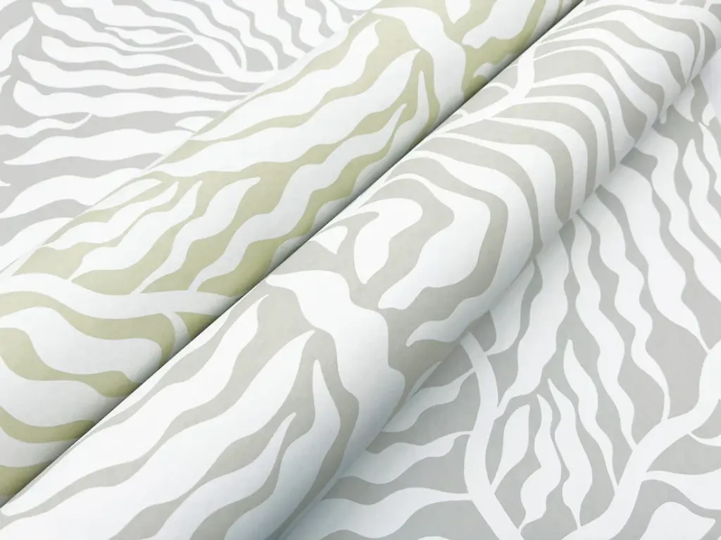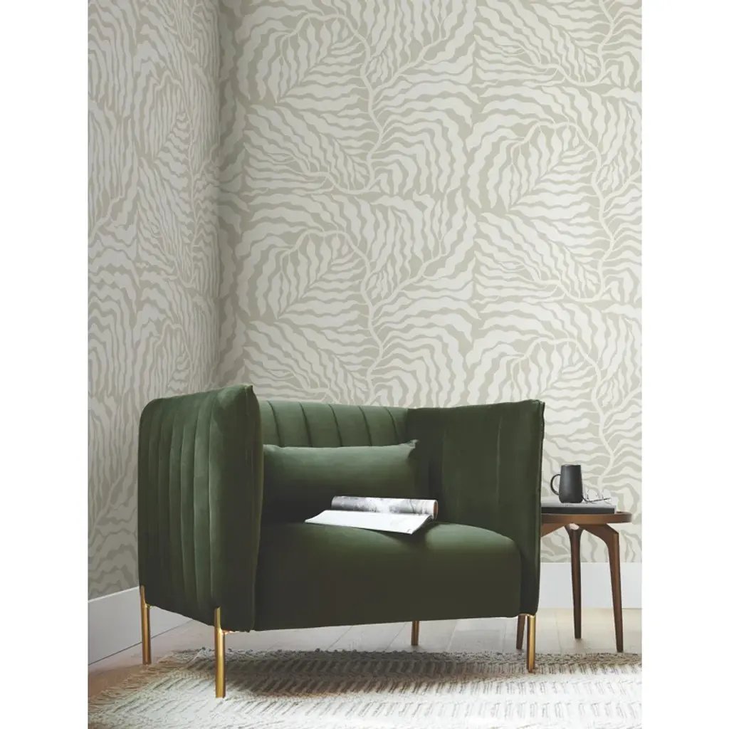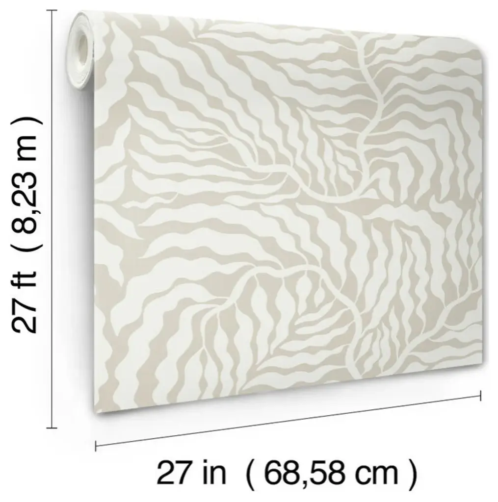 Fern Fronds'' abstracted approach perfectly captures the sense of movement and leafy lushness of the gorgeous woodland flora, this colorway featuring taupe and white color blocking. This Fern Fronds Wallpaper measures approximately 27 inches wide by 27 feet long, measuring approximately 60.8 square feet per roll. Artistic experimentation with the interplay of form, color and texture has led to an avant-garde reimagining of familiar design motifs. Unpasted non woven material; 25.25-in repeat, drop match; Washable and strippable; 27-in by 27-ft long roll; Covers about 60.8 square feet