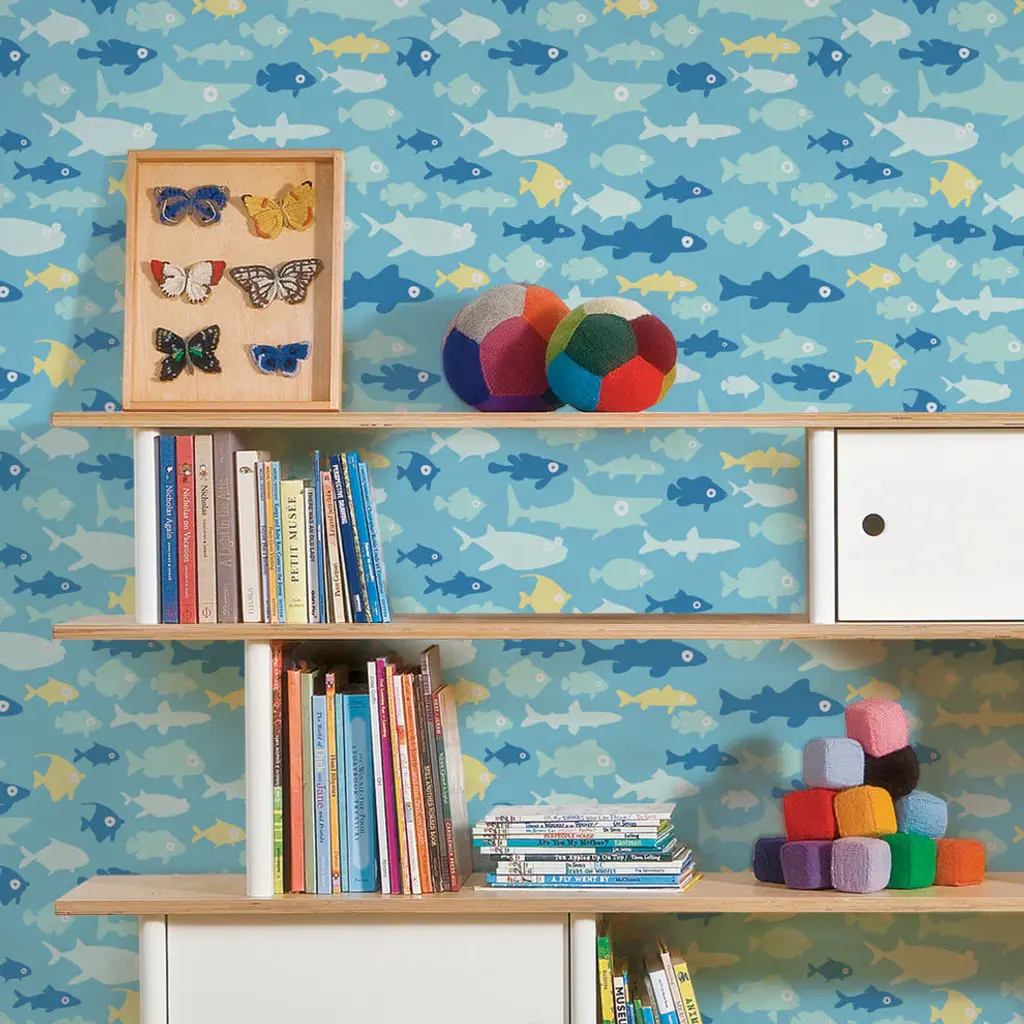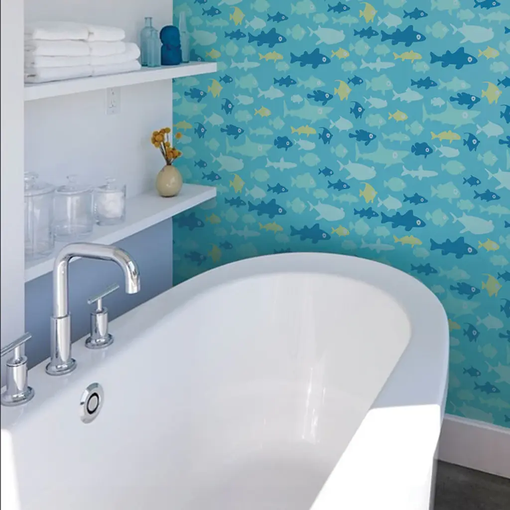 Fish Tank peel & stick vinyl wallpaper. This re-positionable wallpaper is designed and made in our studios in New Jersey. The designs are printed onto an adhesive backed vinyl that can be removed, repositioned and reused over and over again. They do not leave any residue on your walls and are ideal for DIY room makeovers without the mess and headaches of traditional wallpaper. Size:24"w x 60"h24"w x 108"hPattern Repeat Length:every 24" What''s Included:1 sheet of peel-n-stick vinyl wallpaper