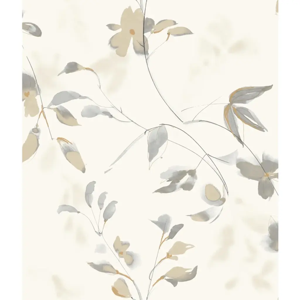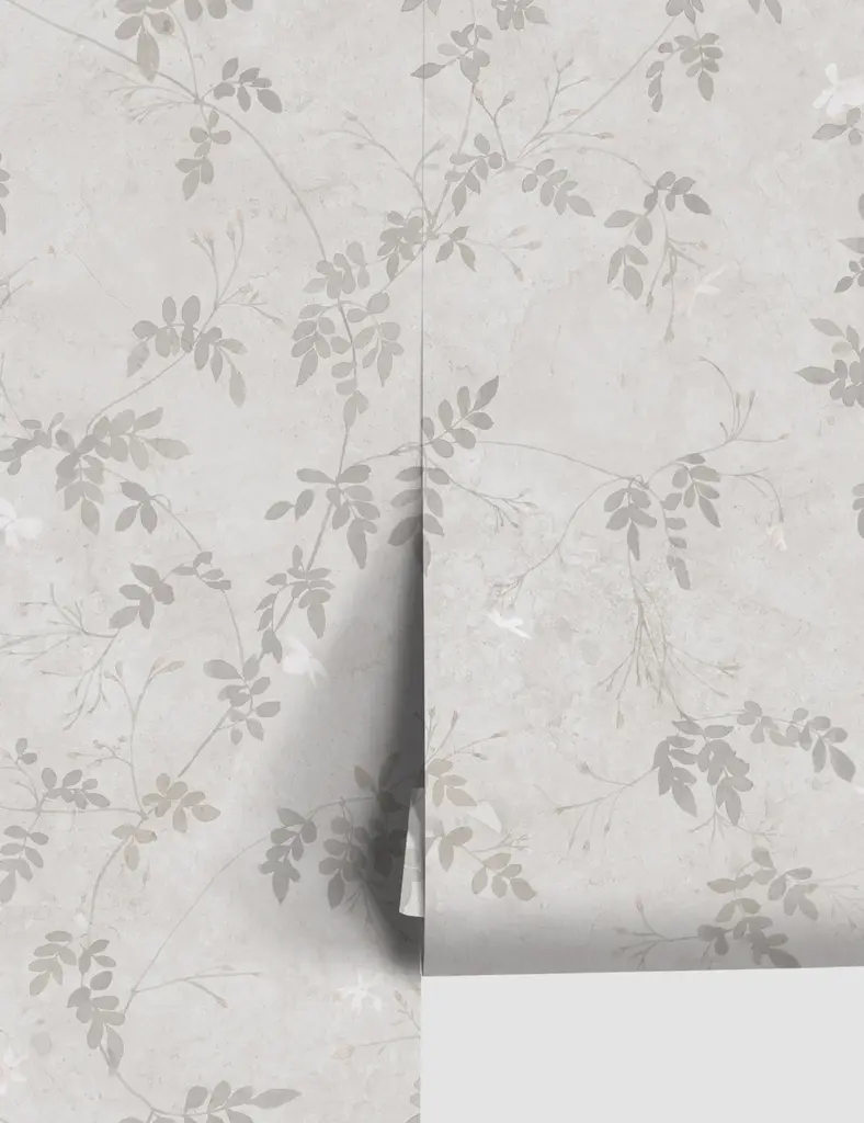 Floral Textured Wallpaper, Leaves On Concrete, Gray Silver Gold, 1 Roll