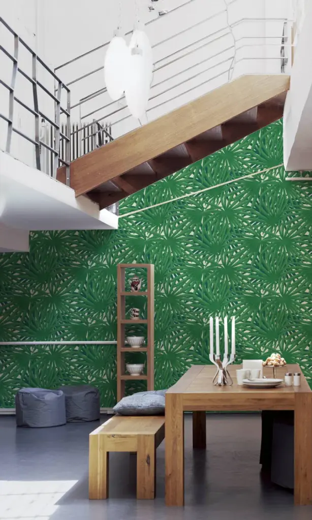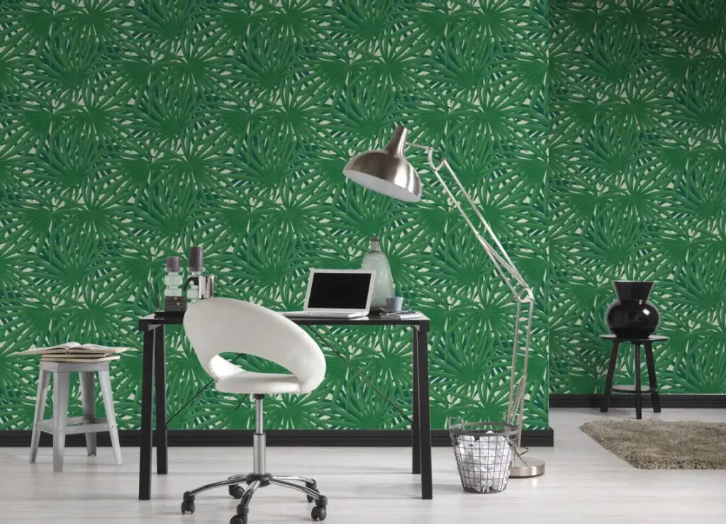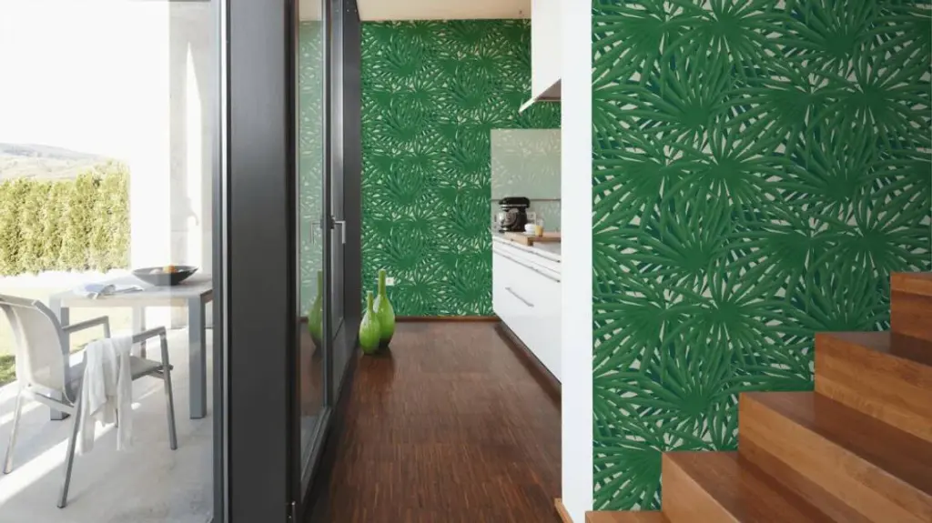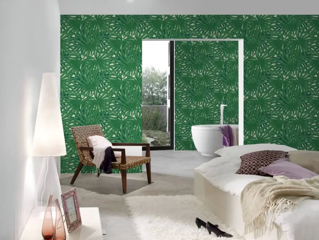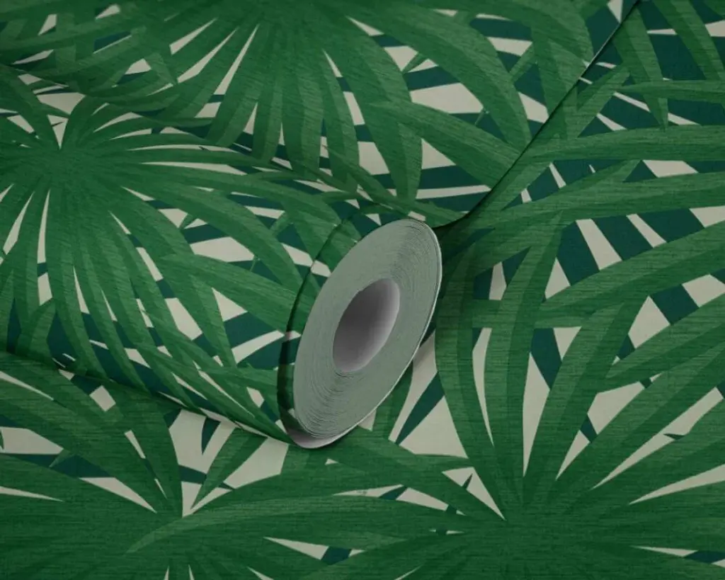 Floral Textured Wallpaper, Palm Leaves 378613, Green Metallic, 1 Roll