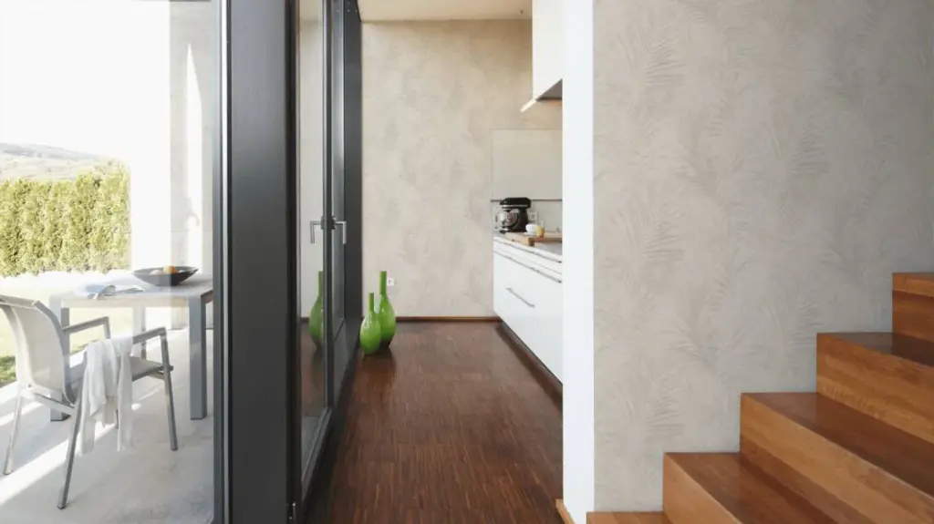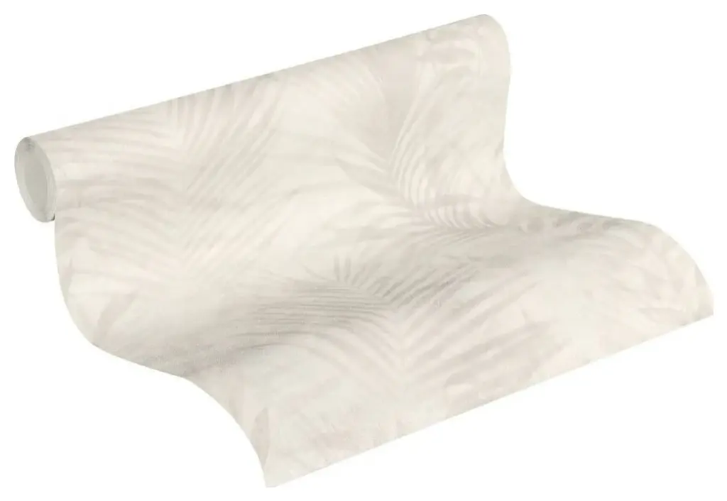 Floral Textured Wallpaper, Palm Tree Leaves, 374113, Beige Cream Gray, 1 Roll