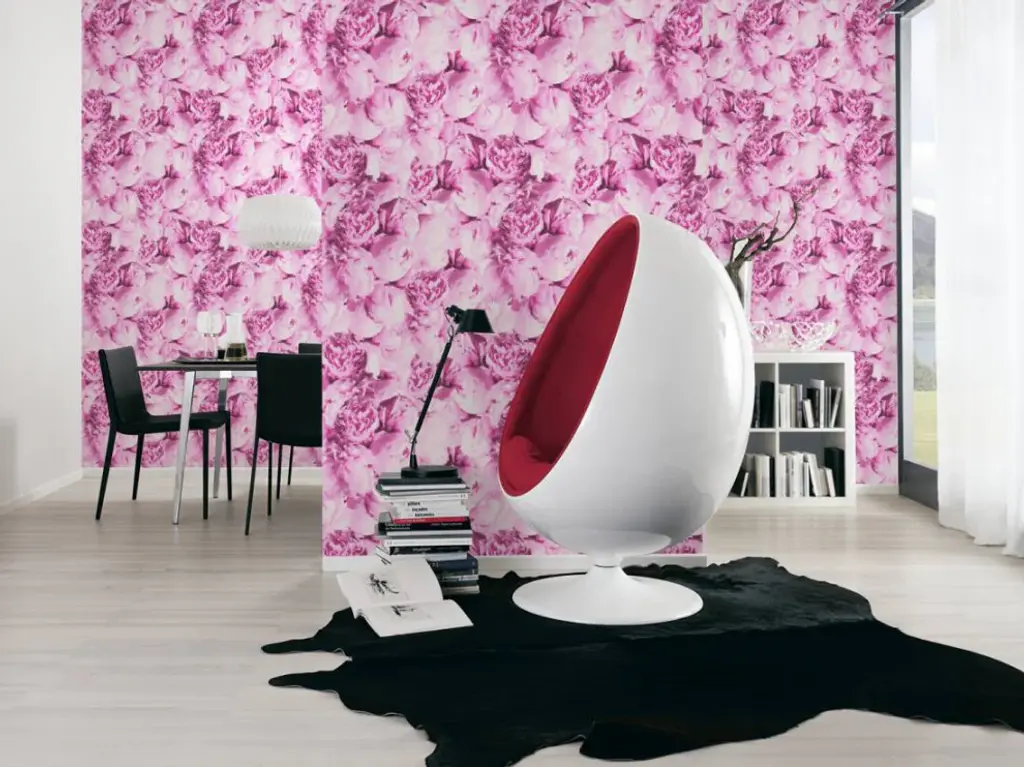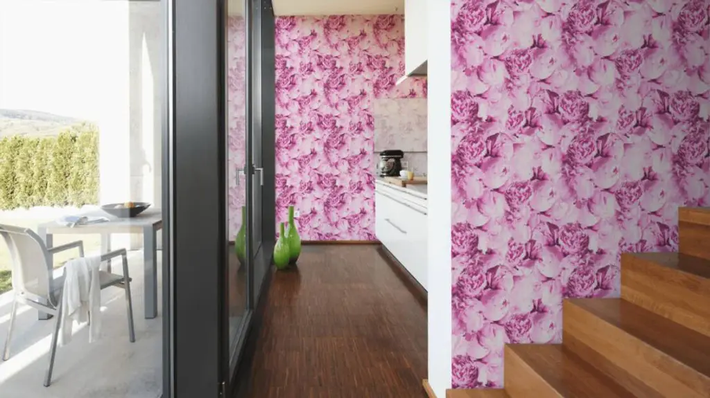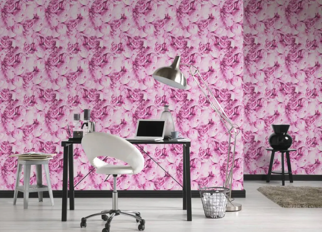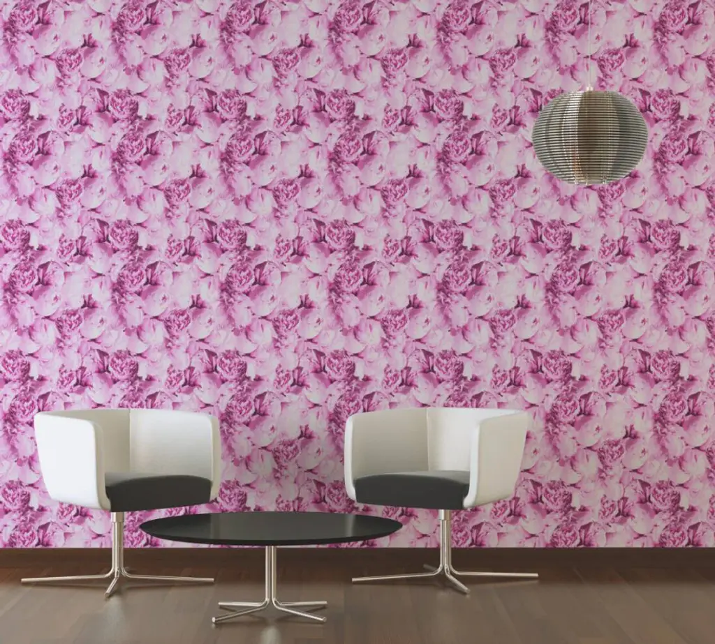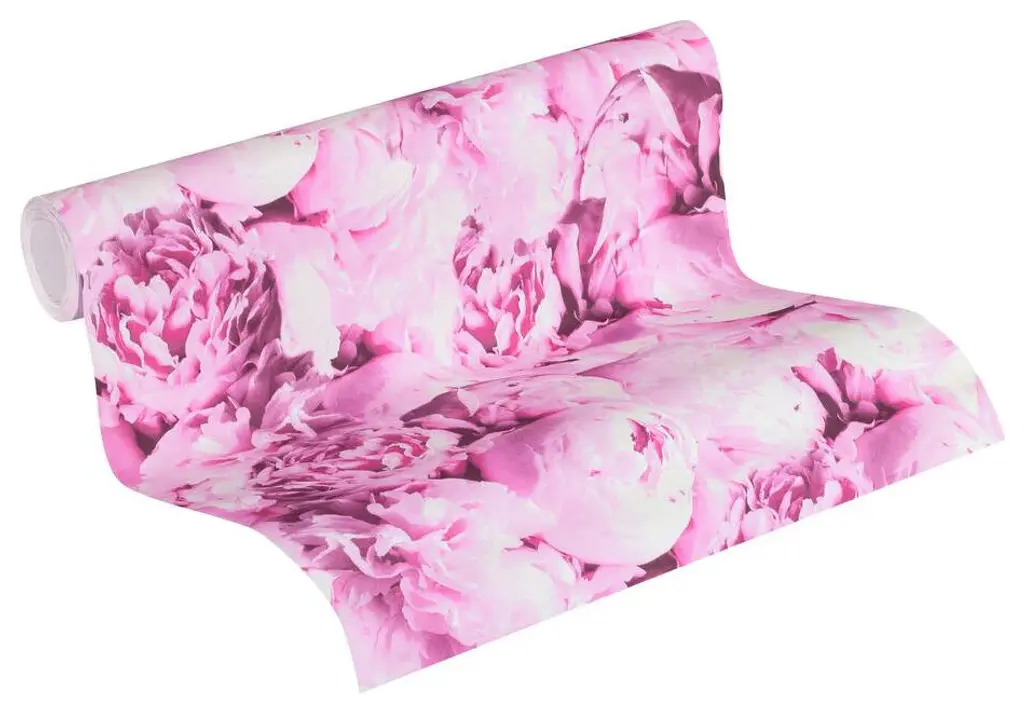 Floral Textured Wallpaper, Peony Flowers, 373981, Pink, 1 Roll