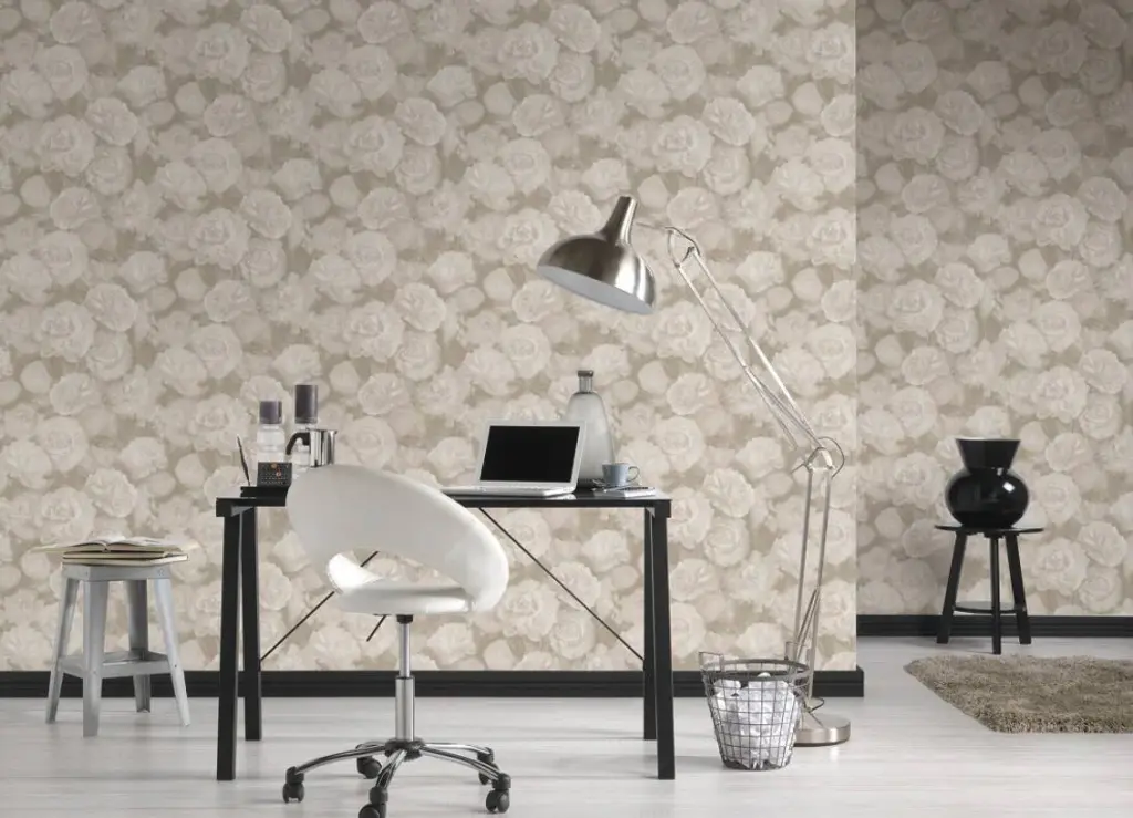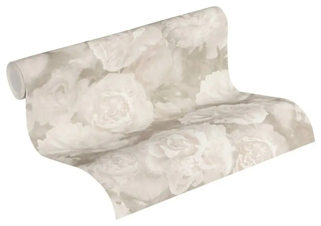 Floral Textured Wallpaper, Peony Flowers, 374023, Pink Rose Gray Silver, 1 Roll