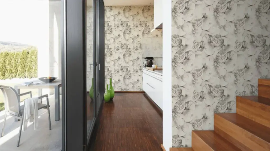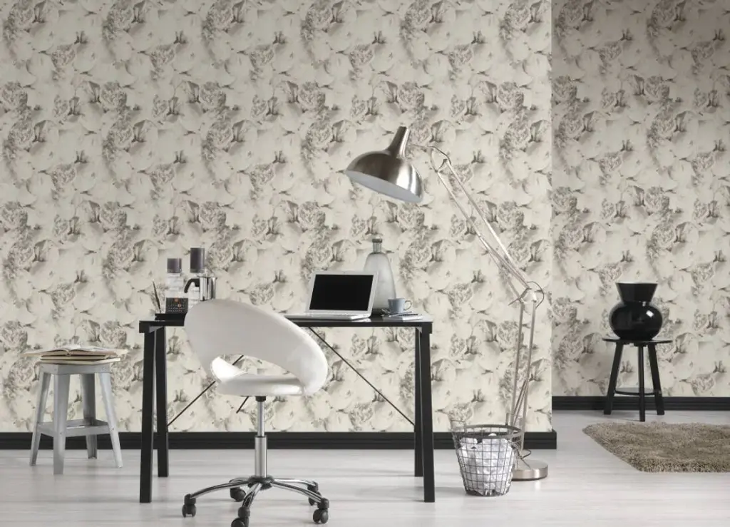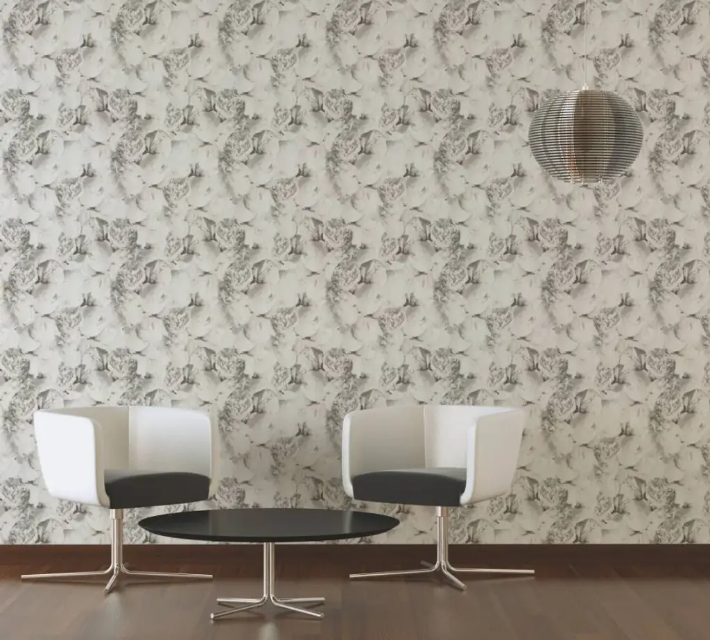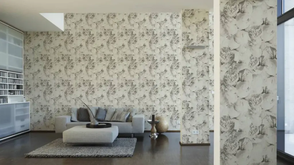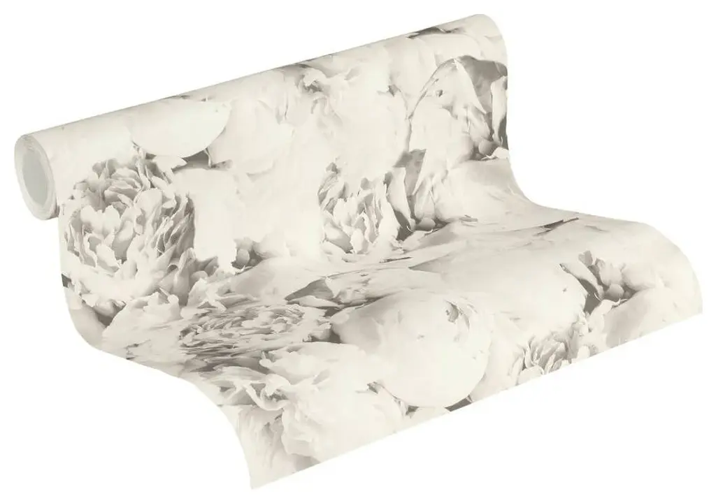 Floral Textured Wallpaper, Peony Flowers, Beige Cream Gray Silver, 1 Roll