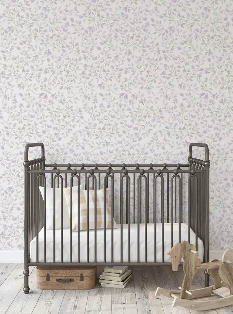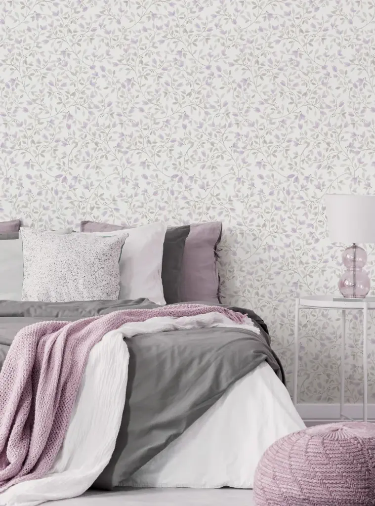 Floral Vines Watercolor Peel And Stick Vinyl Wallpaper, Purple Grey, 24"w X 60"h