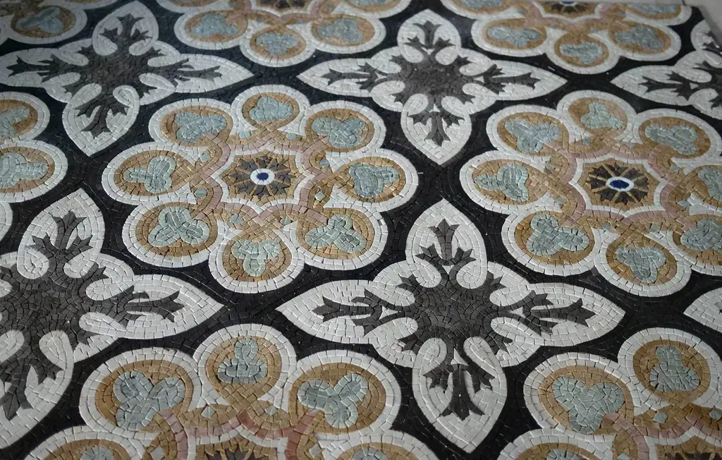 Transform your space with the exquisite "Floral Wallpaper Mosaic - Lallana," a stunning addition that combines artistry and elegance to elevate any environment. This remarkable mosaic features a delicate floral theme rendered in soft, light-toned colors that beautifully contrast against a rich black background. Each tile is meticulously handcrafted, ensuring that every piece is unique and imbued with artisan charm.Designed to bring character to both walls and floors, the Lallana mosaic is perfect for enhancing your indoor décor or adding a touch of sophistication to outdoor areas. Whether you’re redecorating a living room, updating a kitchen backsplash, or creating a serene garden pathway, this versatile mosaic adapts effortlessly to various settings, merging seamlessly with your existing design elements.The vibrant floral motifs evoke feelings of tranquility and natural beauty, making it an ideal choice for creating relaxing spaces or eye-catching focal points. The black field serves not only to highlight the intricate colors but also adds depth and drama to your space, ensuring that your walls or floors become a conversation starter.Crafted from high-quality materials, the Lallana mosaic is designed for longevity and durability, allowing you to enjoy its beauty for years to come. Its easy installation process makes it accessible for both DIY enthusiasts and professional designers, making your decorating dreams achievable with minimal hassle.Experience the charm and artistry that the Floral Wallpaper Mosaic - Lallana brings to your home. Whether used in small doses for accent walls or as a striking full-room installation, this mosaic is sure to inspire and delight, turning any area into a work of art that reflects your personal style. Elevate your living spaces today with the timeless beauty of the Lallana floral mosaic and let your walls tell a story of elegance and creativity.
