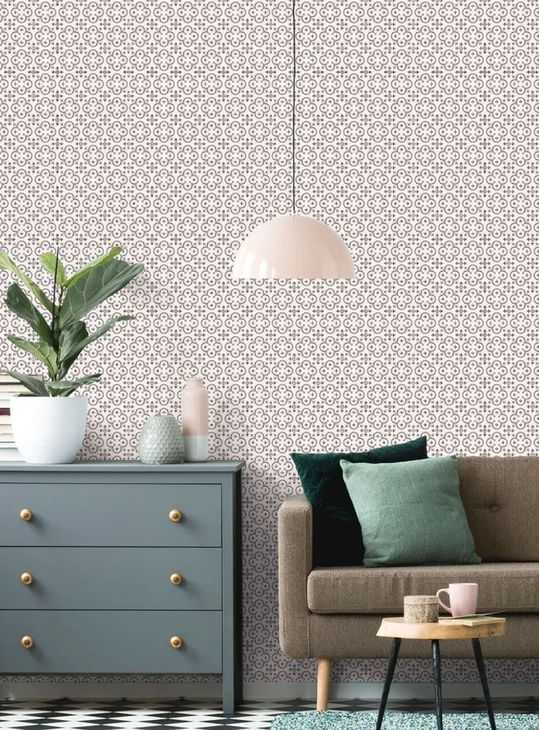 Our Flower Moroccan Tile Peel-and-Stick Vinyl Wallpaper is available in different color options and complements every room in the house!This re-positionable wallpaper is designed and made in our studios in New Jersey. The designs are printed onto an adhesive-backed vinyl that can be removed, repositioned, and reused. The wallpaper does not leave residue on your walls and is ideal for DIY room makeovers without the mess and headaches of traditional wallpaper.Size:24"w x 60"h24"w x 108"h Pattern Repeat Length:Every 4" What''s Included:1 sheet of peel-n-stick vinyl wallpaper