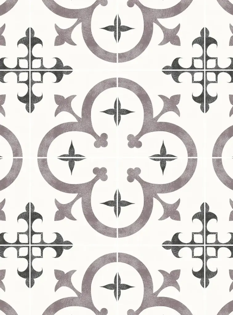 Flower Moroccan Tile Peel & Stick Vinyl Wallpaper, Purple Grey, 24"w X 60"h