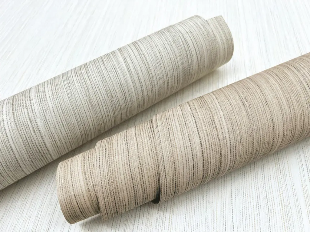 A blend of grey, golden brown, and steel blue hues replicate the woven detailing of grasscloth, slightly embellished with raised inks to add an air of authenticity to Fountain Grass. This Fountain Grass Wallpaper measures approximately 27 inches wide by 27 feet long, measuring approximately 60.8 square feet per roll. Artistic experimentation with the interplay of form, color and texture has led to an avant-garde reimagining of familiar design motifs. Prepasted sure strip material; 24-in repeat, straight match; Washable and strippable; 27-in by 27-ft long roll; Covers about 60.8 square feet