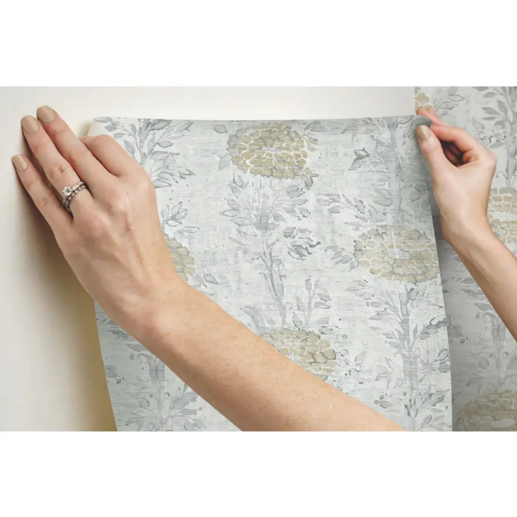 This artistic depiction shows meadows of French Marigold blooms opening their shimmering petals to the sun, shown here in metallic gold and grey on white. This French Marigold Wallpaper measures approximately 27 inches wide by 27 feet long, measuring approximately 60.8 square feet per roll. The tea garden provides a meditative pathway from the outside world to inner tranquility. Experience the quiet luxury and uncompromising beauty within this second edition Tea Garden collection. Unpasted non woven material. 24-in repeat, straight match. Washable and strippable. 27-in by 27-ft long roll. Covers about 60.8 square feet.