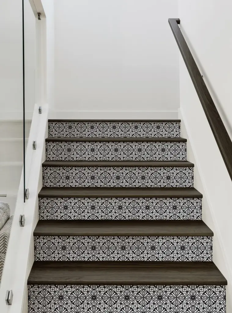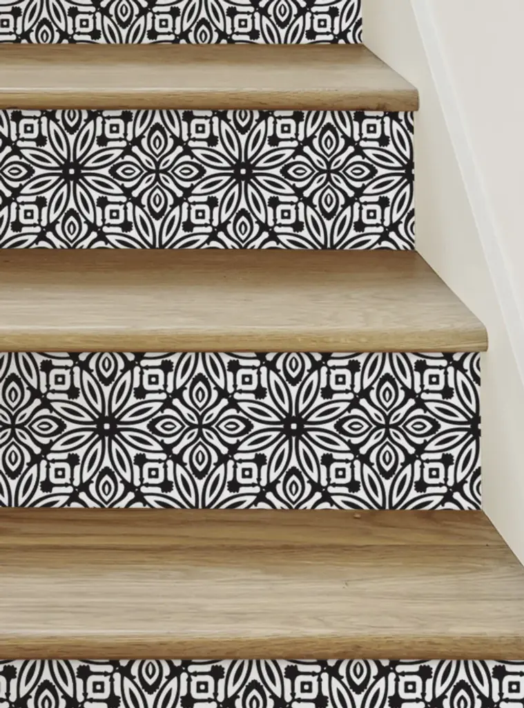 Geo Flowers Peel And Stick Stair Riser Strips, Black, 48"w X 7"h, 6 Sheet