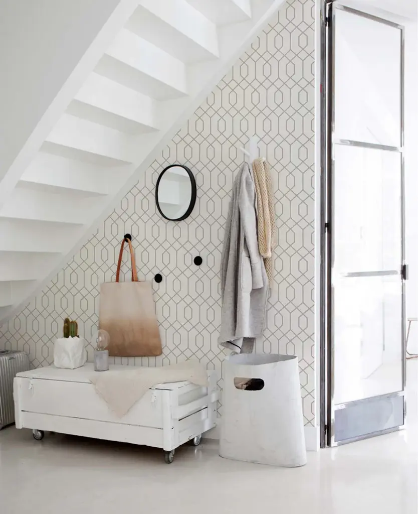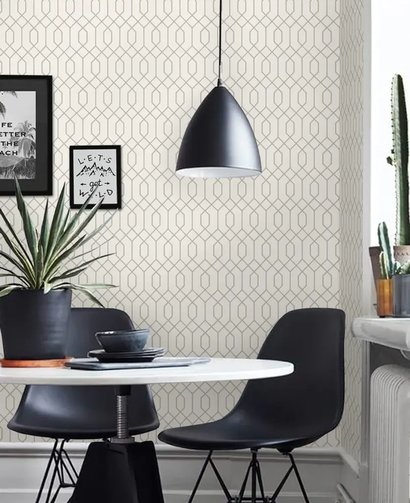 Geometric Hexagon Peel And Stick Vinyl Wallpaper, Light Grey, 24"w X 108"h