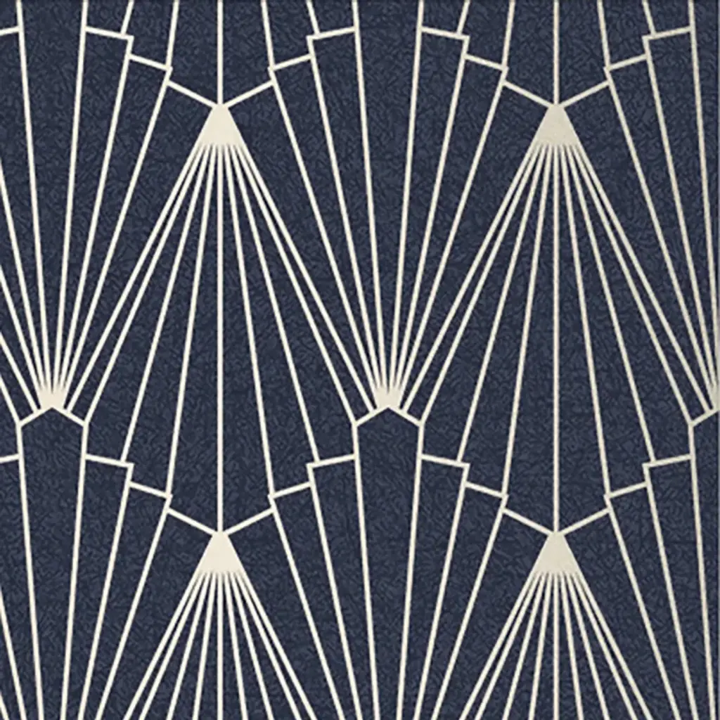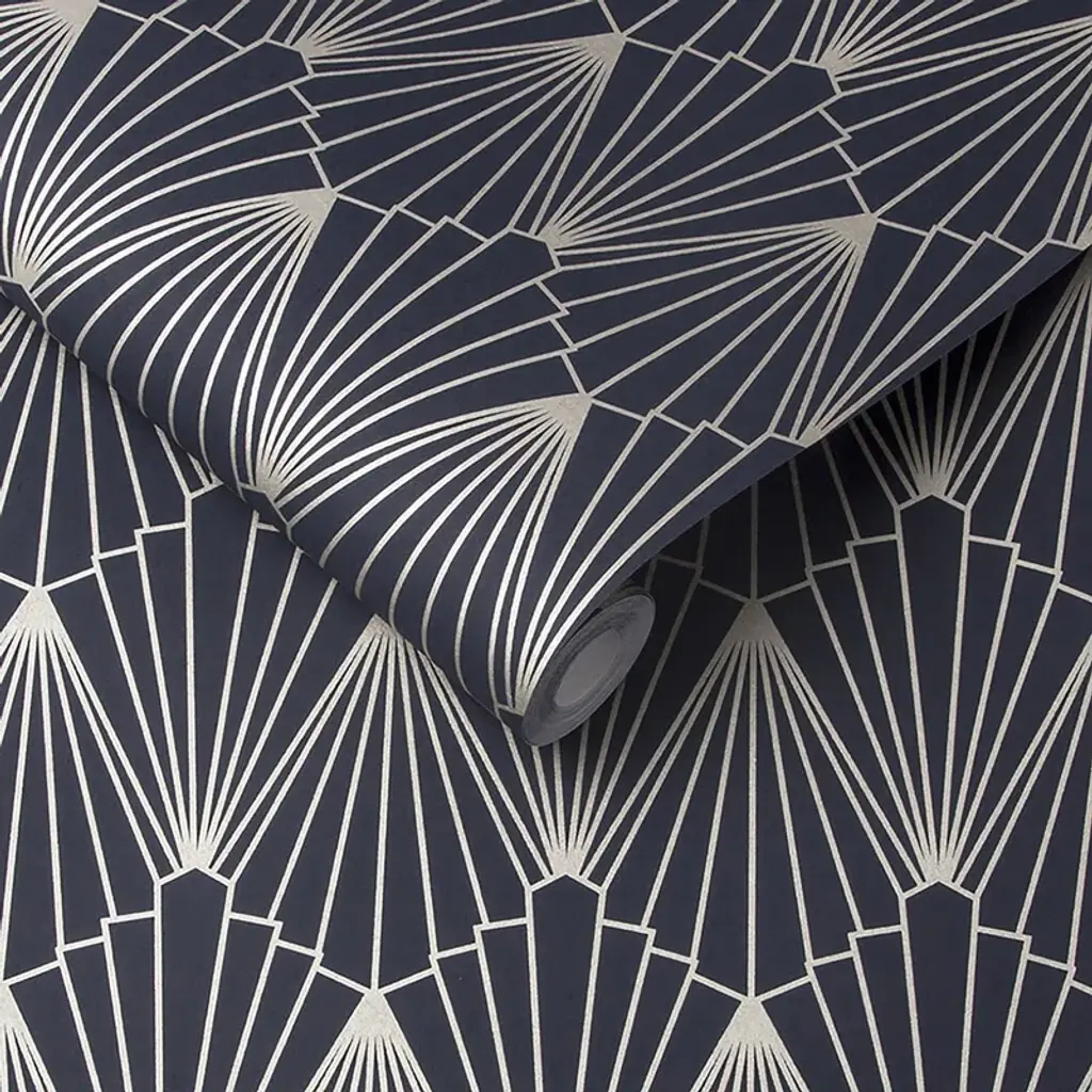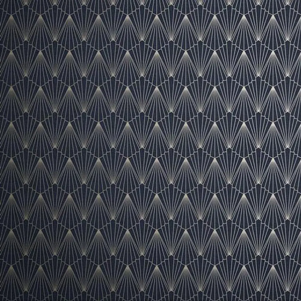 Representing the nightlife of roaring 1920s, the Graham and Brown designers were inspired by Gatsby parties and architectural structure. This design has repetitive fans detailed in gold metallic, resplendent on a textured navy paper. Rene Nightfall wallpaper will bring opulence and sophistication to your decor.