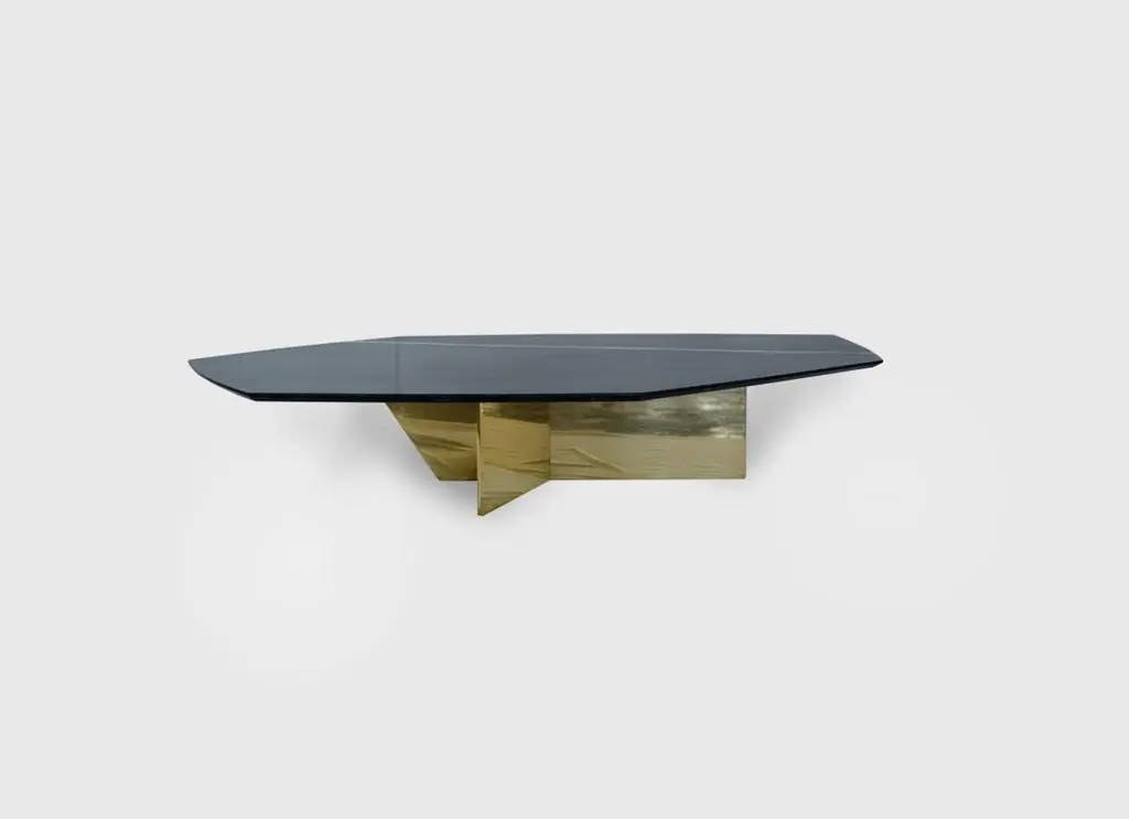 Geometrik marble and brass coffee table III by Atra Design.Dimensions: D 130 x W 90 x H 32 cm.Materials: Negro Monterrey marble, brassOther marbles and sizes available. Polished brass, satin brass and aged brass sculptural solid base available.Atra DesignWe are Atra, a furniture brand produced by Atra form a mexico city–based high end production facility that also houses our founder Alexander Díaz Andersson's architecture and design studio.We are inspired by the future, informed by past centuries of woodworking traditions and are designing for the present and many years to come.Our designs are driven by what excites our senses and challenges our creativity, not about the latest trends or the diktat of marketing.We design with a passion for modernism and futurism and our discerning clientele comes to us for our rigorous sense of quality, comfort and uniqueness. atra's style effortlessly demonstrates our carpenter's artistry .Alexander Díaz AnderssonAtra founder Alexander Díaz Andersson was raised in Sweden, studied in Spain before moving to the Yucatán peninsula, where he first started experimenting with furniture. Now located in Mexico City, Díaz Andersson’s furniture, sculptures, interiors, and hospitality projects are defined by a studied balance of chaos and structure, fluidity and function. trained in industrial design, Díaz Andersson combines academic learning with knowledge passed down from experienced artist mentors and the energy of autodidactic exploration. his practice is both intuitive and informed by an understanding of history, process, and materials. Above all, Díaz Andersson’s guiding principle is pleasure. Alexander Díaz Andersson has been featured in Wallpaper Magazine, Architectural Digest, GG, Surface, and Vogue to name a few.