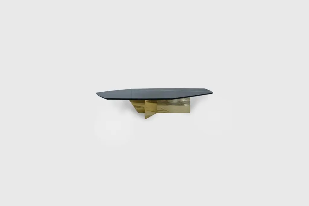 Geometrik Negro Monterrey Stone and Brass Small Coffee Table by Atra DesignDimensions: D 90 x W 130 x H 32 cm.Materials: Negro Monterrey stone and brass.Available in three sizes. Different marble options available: Verde Tikal, Negro Monterrey, Travertine Navona, Silver Travertine, Ocean Black Travertine, Verde Alpi, Taj Mahal, Cristallo and Calacatta Viola. Please contact us. Atra DesignWe are Atra, a furniture brand produced by Atra form a mexico city–based high end production facility that also houses our founder Alexander Díaz Andersson's architecture and design studio.We are inspired by the future, informed by past centuries of woodworking traditions and are designing for the present and many years to come.Our designs are driven by what excites our senses and challenges our creativity, not about the latest trends or the diktat of marketing.We design with a passion for modernism and futurism and our discerning clientele comes to us for our rigorous sense of quality, comfort and uniqueness. Atra's style effortlessly demonstrates our carpenter's artistry.Alexander Díaz AnderssonAtra founder Alexander Díaz Andersson was raised in Sweden, studied in Spain before moving to the Yucatán peninsula, where he first started experimenting with furniture. Now located in Mexico City, Díaz Andersson’s furniture, sculptures, interiors, and hospitality projects are defined by a studied balance of chaos and structure, fluidity and function. trained in industrial design, Díaz Andersson combines academic learning with knowledge passed down from experienced artist mentors and the energy of autodidactic exploration. his practice is both intuitive and informed by an understanding of history, process, and materials. Above all, Díaz Andersson’s guiding principle is pleasure. Alexander Díaz Andersson has been featured in Wallpaper Magazine, Architectural Digest, GG, Surface, and Vogue to name a few.