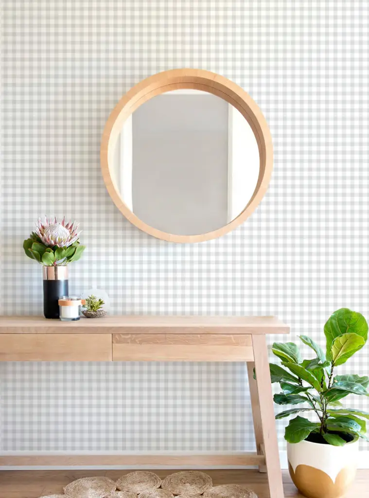 Our Gingham Check wallpaper print is perfect for modern farmhouse interiors. Use it to add charm to any room, or in unexpected places such as behind a bookcase or the backs of large open shelves.This re-positionable wallpaper is designed and made in our studios in New Jersey. The designs are printed onto an adhesive-backed fabric that can be removed, repositioned, and reused. The wallpaper does not leave residue on your walls and is ideal for DIY room makeovers without the mess and headaches of traditional wallpaper.Size:24"w x 48"hPattern Repeat Length:every 1.5" What''s Included:1 sheet of peel-n-stick fabric wallpaper