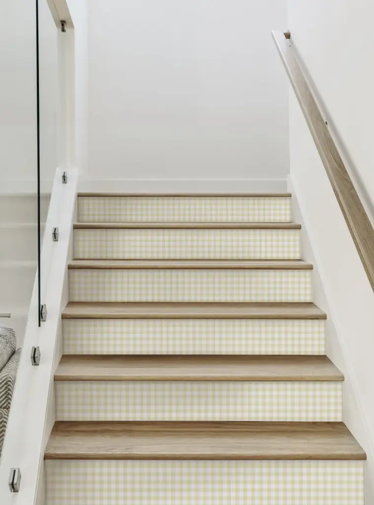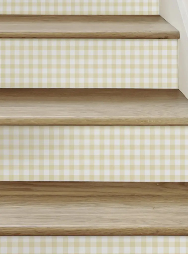Gingham Check Peel And Stick Stair Riser Strips, Honey Wheat, 48"w X 6"h, 6 Pack