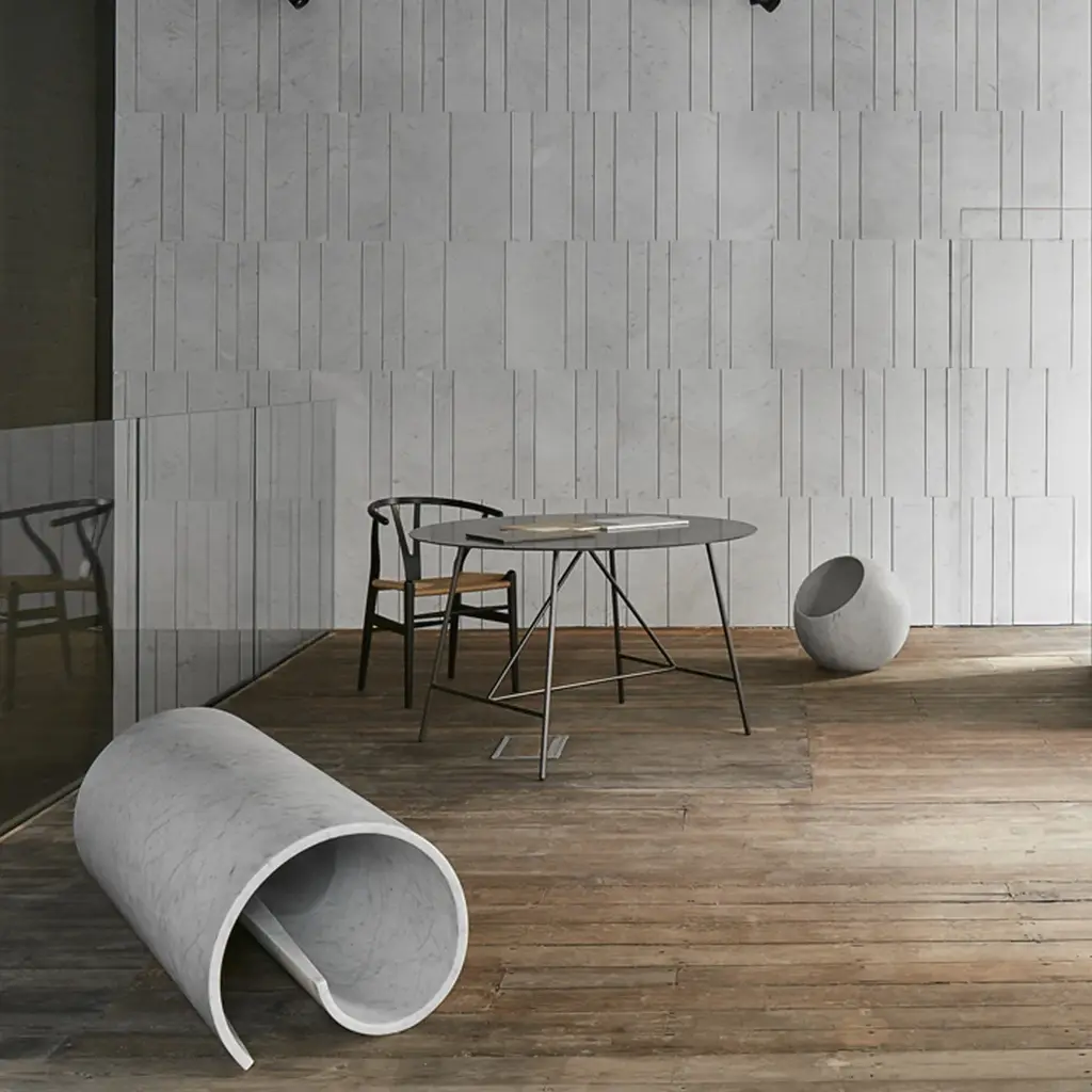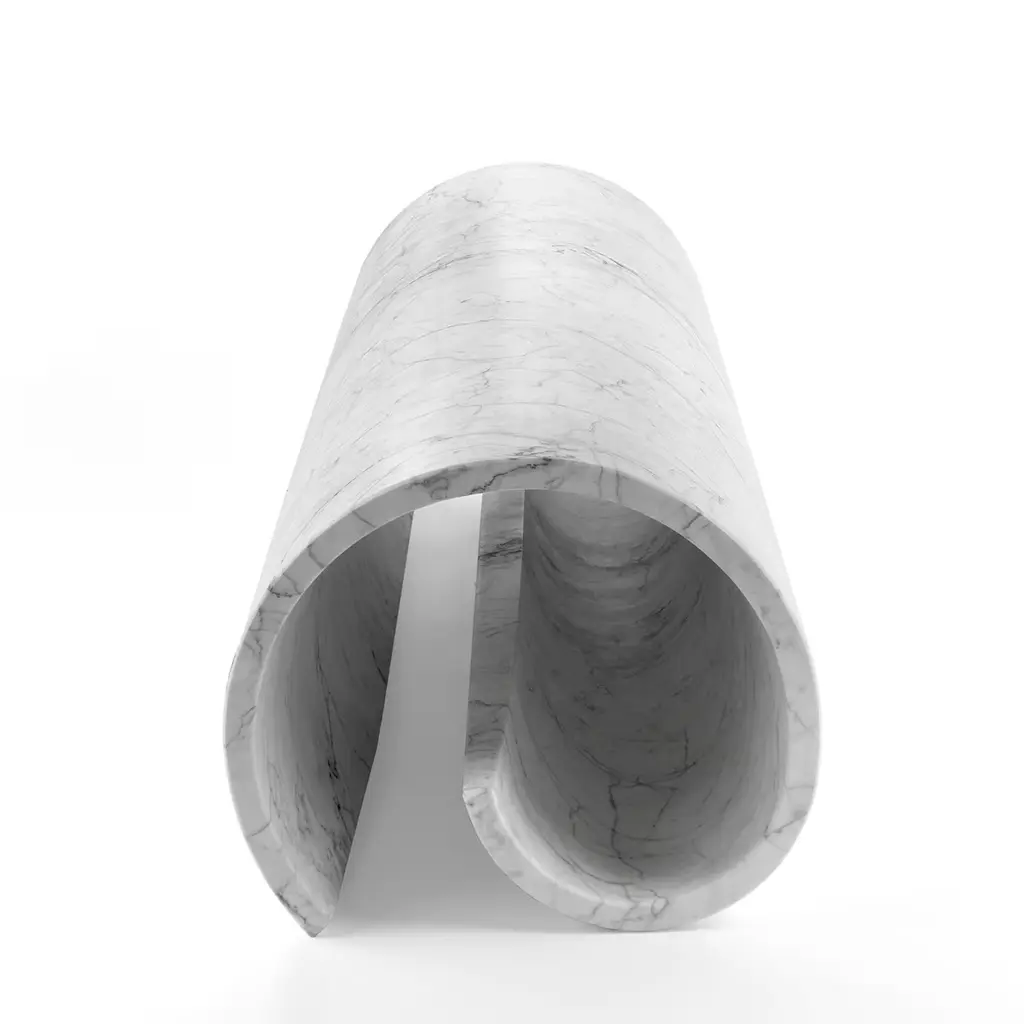 Girella has been produced from an only sophisticated Bianco Carrara marble piece, bended almost like a spiral. Beautiful as a decorative sculpture, it can also be used as a bench. Designed by Ron Gilad, this is a special edition piece, being awarded as Best Domestic Design 2013 by Wallpaper.