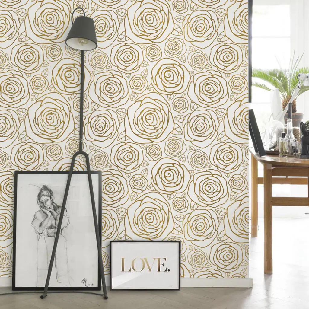 Gold Roses Peel And Stick Vinyl Wallpaper, 24"w X 60"h