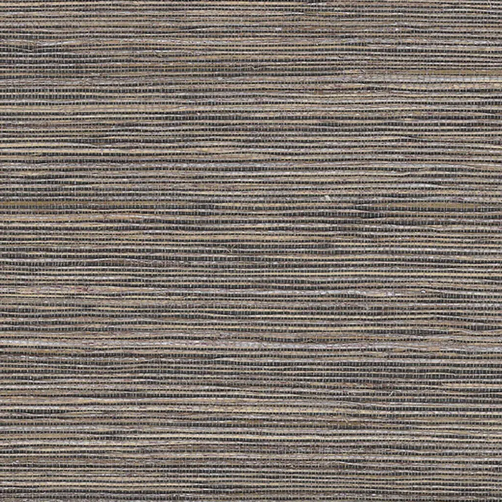 Rich eggplant colored fibers are woven together in this grasscloth wallpaper. The open weave reveals a metallic copper backdrop. From Singapore Wallcoverings by JF Fabrics.