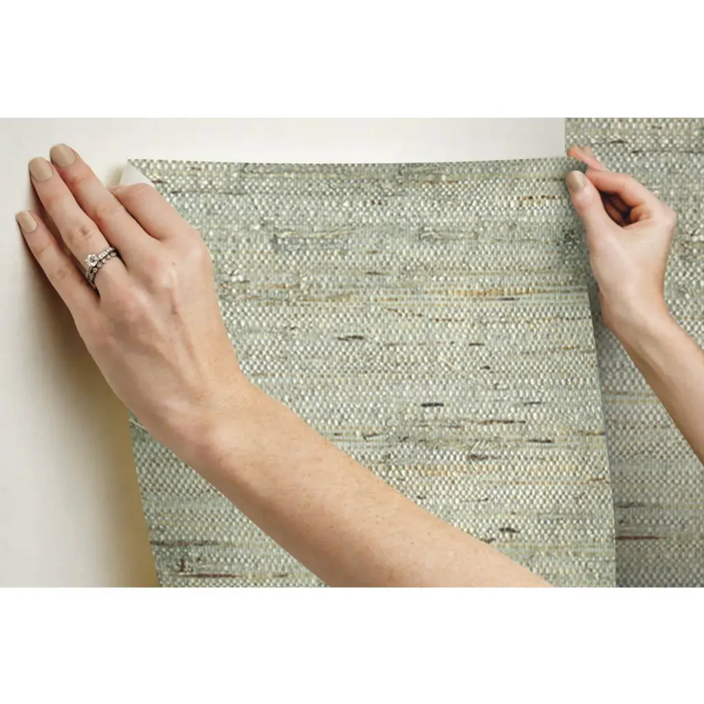 Horizontal strands of brown thread their way across the woven landscape of this natural grasscloth. Designer colors bring a stylish elegance to this warm, earthy product lending to the organic and Asian appeal with a more contemporary designer flair. The cool turquoise color of the organic fiber adds tranquility to any room. This Blue Grasscloth Wallpaper measures 36 inches wide by 24 feet long, covering approximately 144 square feet per roll. Unpasted grasscloth material; No repeat, random match; Dust and Vacuum and peelable; 36-in by 24-ft long roll; Covers about 72 square feet