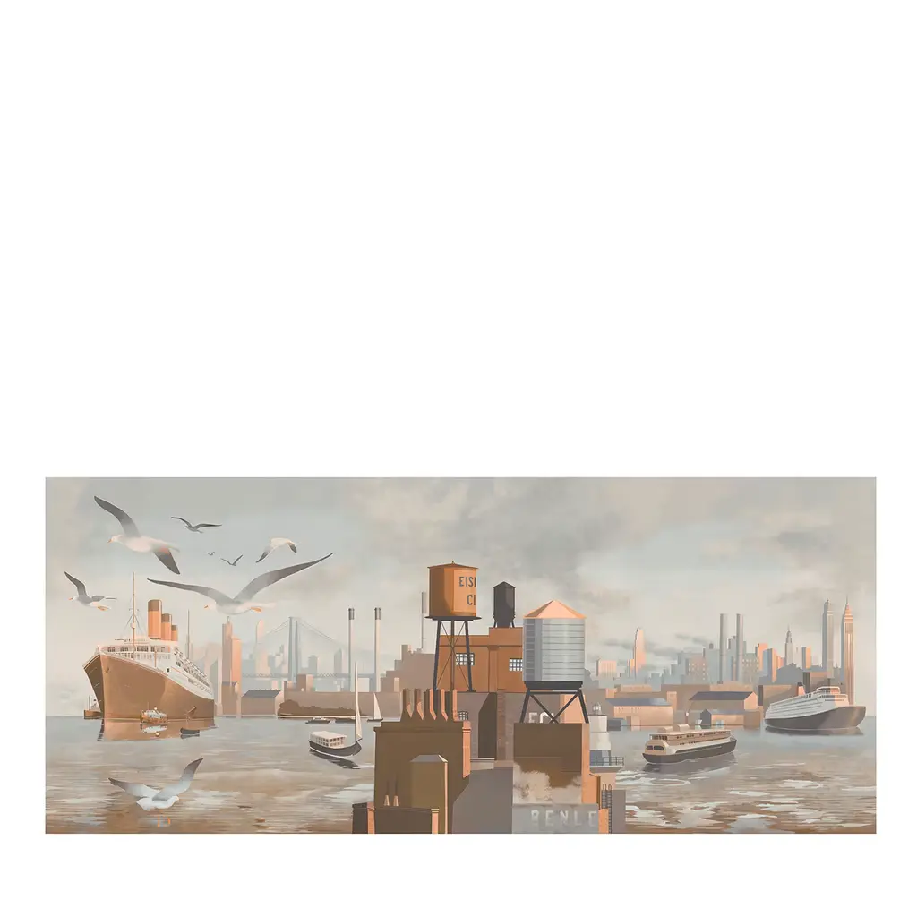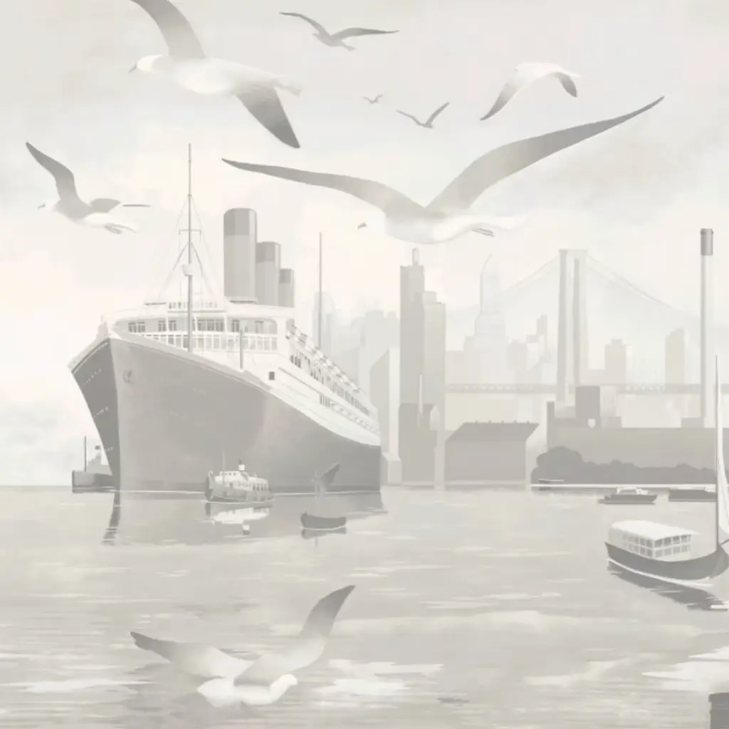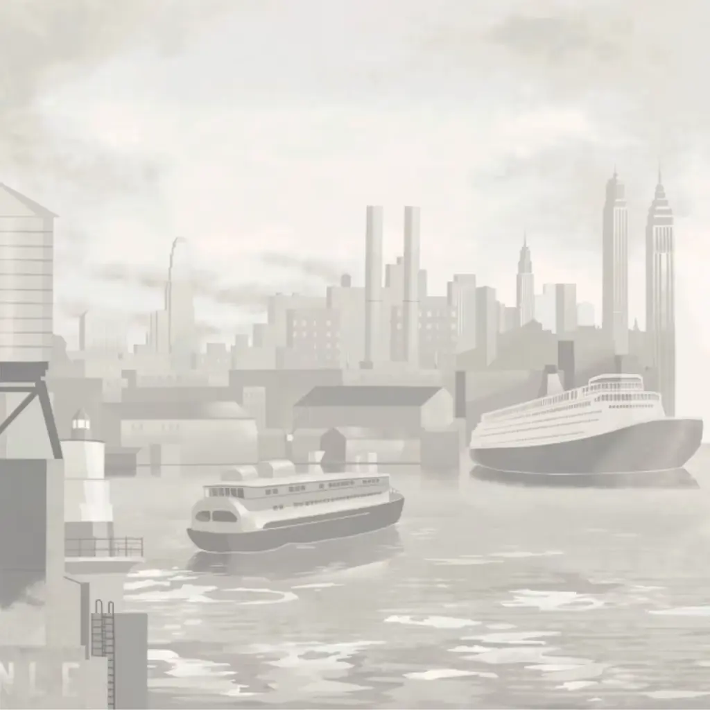 The Gray From Land to Sea Polyester Wallcovering Fabric is a striking tribute to mid-20th-century travel illustrations, revitalizing the spirit of 1940s New York through elegant and modern graphics. This wallcovering transforms classic imagery into sophisticated design elements, encapsulating the vibrant atmosphere of a city that never sleeps. The innovative digital printing technology used ensures a vivid and durable finish, while the simple installation method through stretching allows for seamless application. This design enhances wall surfaces, contributing to an inviting ambience with excellent breathability and sound absorption. The price is per square meter and the product is also available in an alternative height of 270 cm. Please contact the Concierge for additional information.