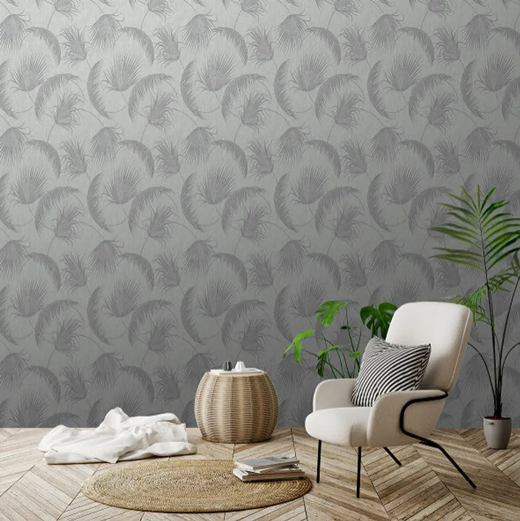 The SK Filson Gray Oasis Foil Leaves Wallpaper is the perfect way to inject both colour and character into your home this season. This eye-catching wallpaper is part of the much loved Famo Wallpaper Collection and is sure to make a welcome addition to your walls. The wallpaper has a tropical, leaf inspired design for a fashionable look. It is brought to life in a striking Gray colour scheme with metallic accents for added style.Easily strip-ableMatch Type is StraightDesign Repeat is 20.86 Inches