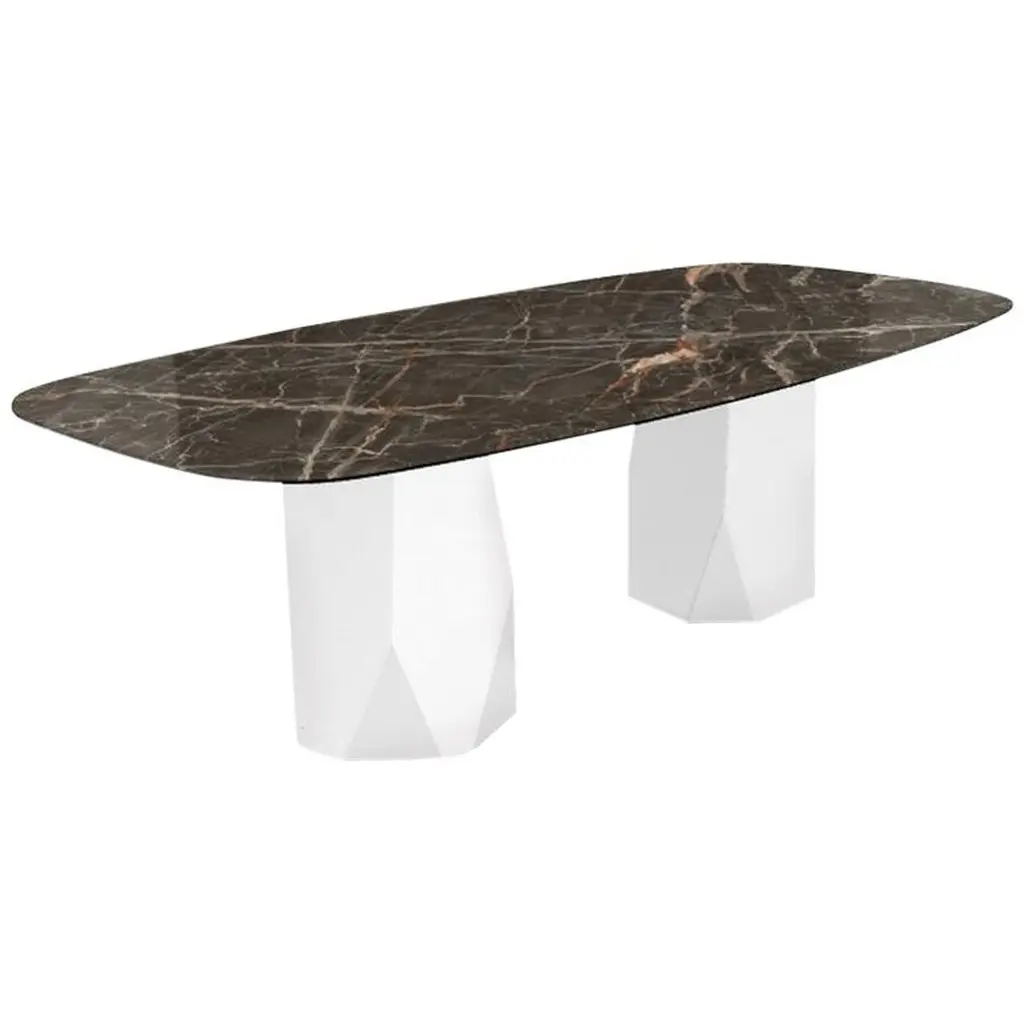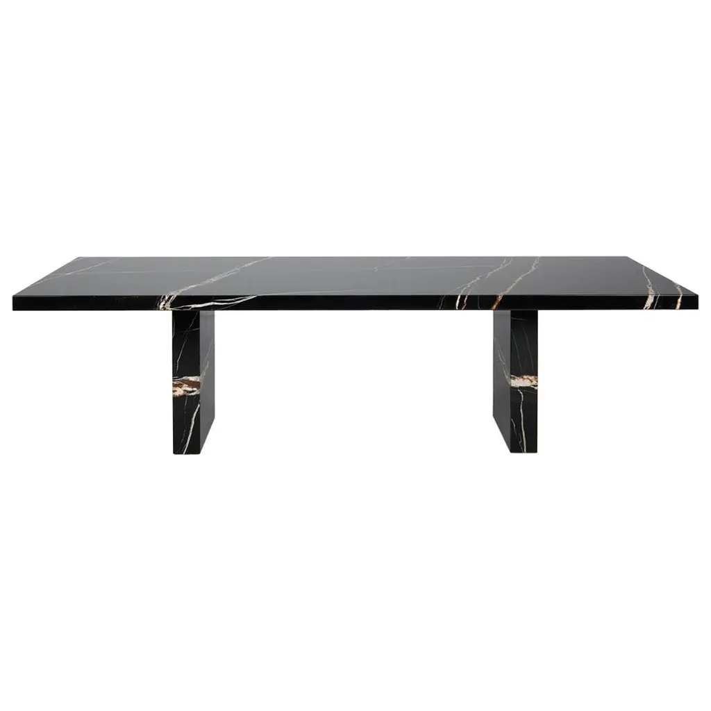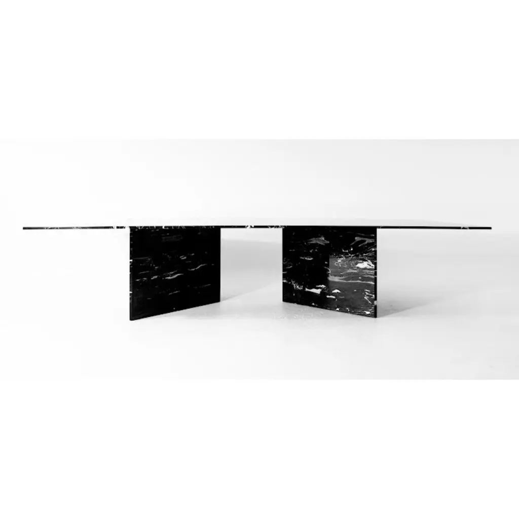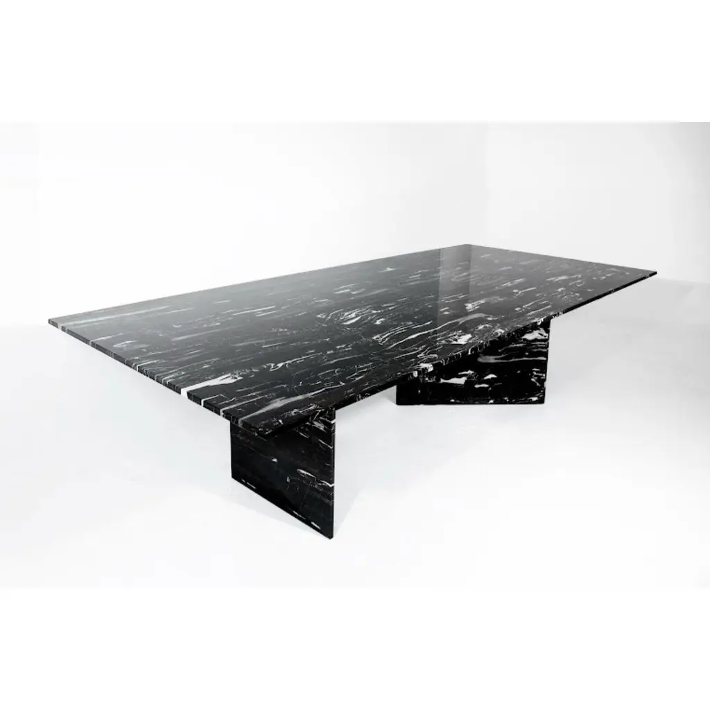 Great expectations dining table by Claste.Dimensions: D 137.2 x W 289.5 x H 73.7 cm.Material: Marble.Weight: 443 kg.Since 2017 Quinlan Osborne has cultivated an aesthetic in his work that is rooted in the passion for contemporary design he developed while practicing as an Architect for fi fteen years prior to shifting his attention to the world of collectible design and furniture. Representative of a new form of minimalism his studio produces a refi ned, sensual series of works which provide subtle moments of refl ection, devoid of distraction yet monumental and bold. The sculptural nature of his work explores new ways and means of infusing traditional materials such as marble and glass with notions of fragility and tension that elicit a deeper more emotional connection resulting in pieces that appear impossibly stable yet permanently grounded. Through ingenuity and artistry his work fuses an in-depth knowledge of tradition- al techniques of craftsmanship and artisanry with a desire to push the boundaries of what is possible with modern technology and fabrication processes, blending the familiar with the extraordinary and inviting people to re-examine their expectations of what furniture should be and how it is traditionally used.His work has been recognized with numerous high-profi le international design awards, including the Archiproducts Design Award, the Good Design Award from the Chicago Athenaeum: Museum of Art and Design and the Grands Prix du Design for Quebec. He has also been featured in several signifi cant design and lifestyle publications around the world including Elle Décor, T Magazine, Architectural Digest, Wallpaper, Surface Magazine and many others.