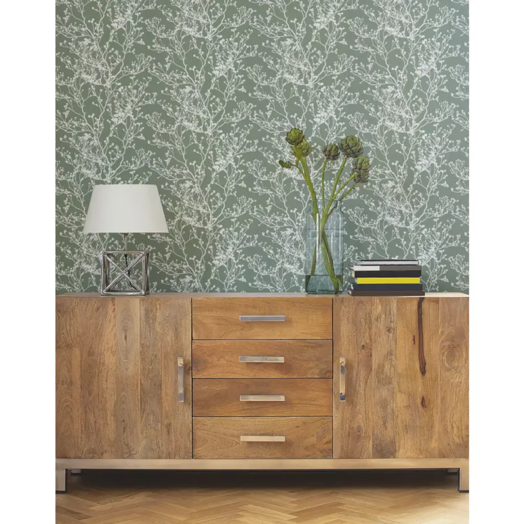 A harbinger of spring, early growth on trees and bushes brings joy of new beginnings; woven Budding Branches Silhouette Wallpaper has the same uplifting message. This Budding Branch Silhouette Wallpaper measures approximately 27 inches wide by 27 feet long, covering About 60.8 square feet per roll. Printed on an unpasted paper and created with the highest quality of craftsmanship, this wallpaper is easy to install; simply apply paste to paper and hang. Unpasted paper weave material; 25.25-in repeat, drop match; Washable and strippable; 27-in by 27-ft long roll; Covers about 60.8 square feet